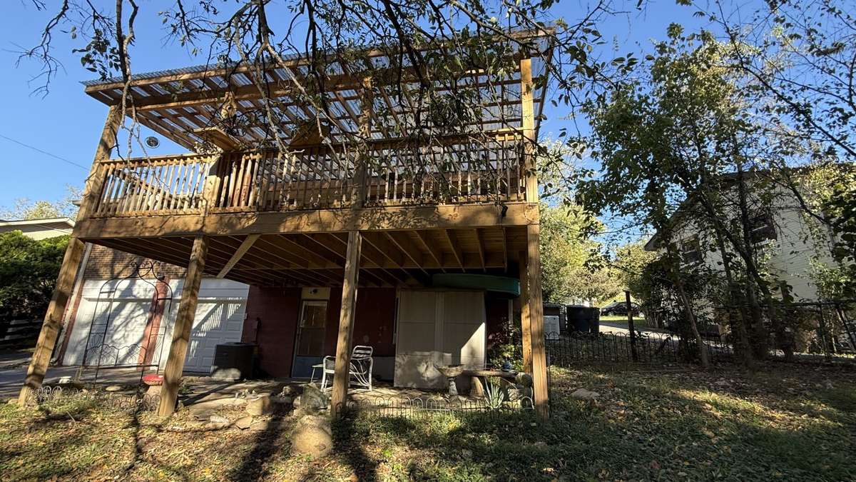 Parking area in Back of Home with Coevered Patio and Covered Deck with also a Small Deck.