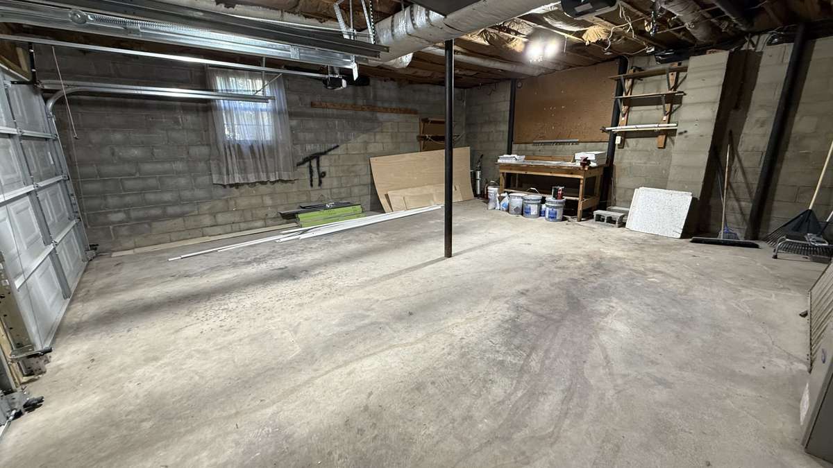 View of the downstairs Half Bath and also Washer and Dryer Hookups with shared Utility Room. Also entrance of the 2 Car Garage and view of the entrance of the covered Patio. This room is also ground level in the back side of the home