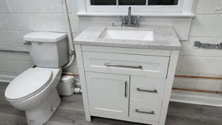 Main Level of home Full Bathroom with New Vanity, Shower/Tub Combo,Flooring and New Paint.
