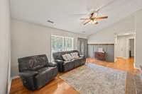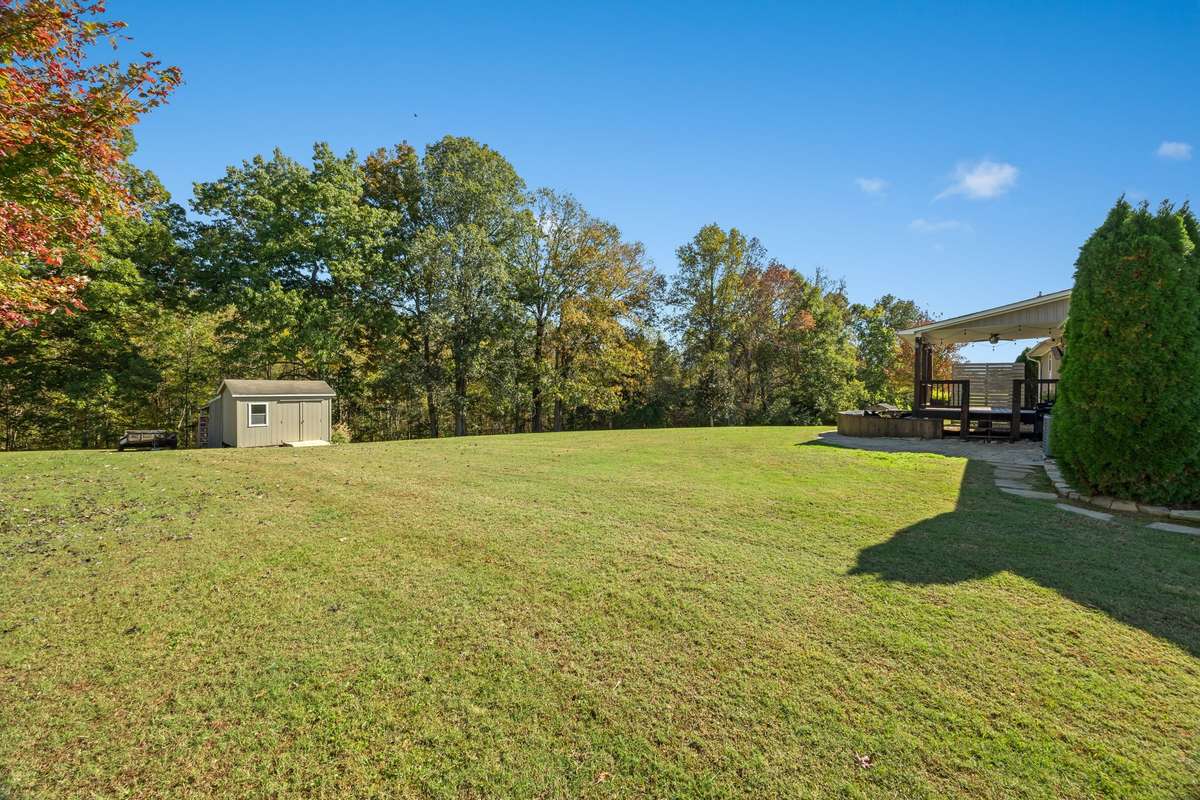 Southern charm meets comfort and style. The open floor plan effortlessly connects the living spaces, making it ideal for both entertaining and everyday life. At the heart of the living room, a striking statement fireplace serves as a warm focal point, providing both ambiance and a cozy gathering spot. The layout features a thoughtful split bedroom design, enhancing privacy for everyone. Step outside onto the covered back deck, where you can enjoy views of the maintained level backyard—perfect for play, gardening, or simply soaking up the sun. The wood privacy screen creates a secluded atmosphere, allowing you to unwind around the fire pit area, perfect for evening gatherings or quiet moments by the flames. Adding to the unique charm of this property is a beautifully integrated koi pond, offering a tranquil spot to relax and enjoy the soothing sounds of water. This home is a beautifully crafted sanctuary, ready for you to create lasting memories. Schedule a showing today!