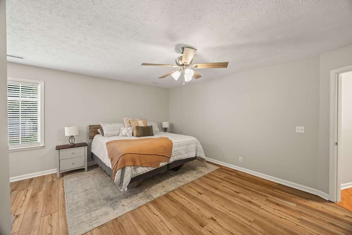 Southern charm meets comfort and style. The open floor plan effortlessly connects the living spaces, making it ideal for both entertaining and everyday life. At the heart of the living room, a striking statement fireplace serves as a warm focal point, providing both ambiance and a cozy gathering spot. The layout features a thoughtful split bedroom design, enhancing privacy for everyone. Step outside onto the covered back deck, where you can enjoy views of the maintained level backyard—perfect for play, gardening, or simply soaking up the sun. The wood privacy screen creates a secluded atmosphere, allowing you to unwind around the fire pit area, perfect for evening gatherings or quiet moments by the flames. Adding to the unique charm of this property is a beautifully integrated koi pond, offering a tranquil spot to relax and enjoy the soothing sounds of water. This home is a beautifully crafted sanctuary, ready for you to create lasting memories. Schedule a showing today!