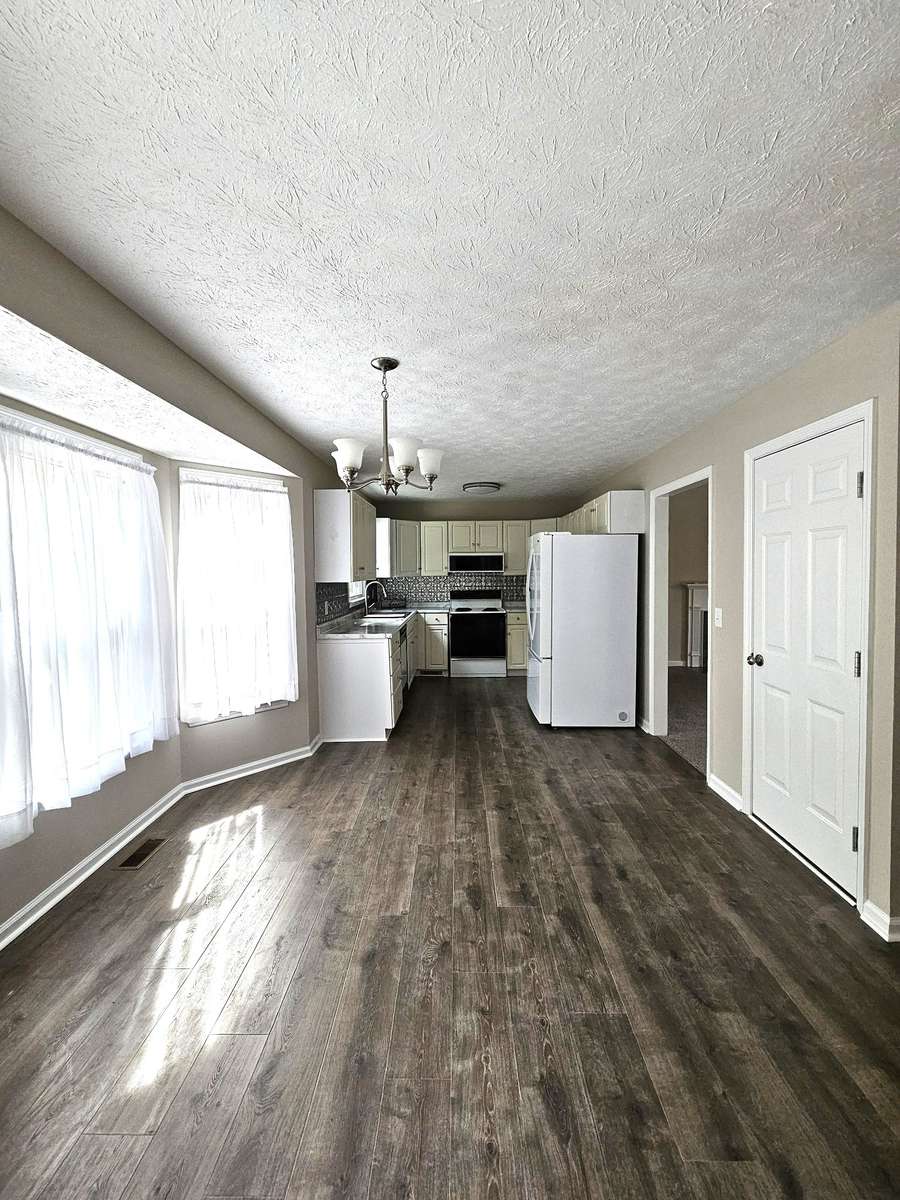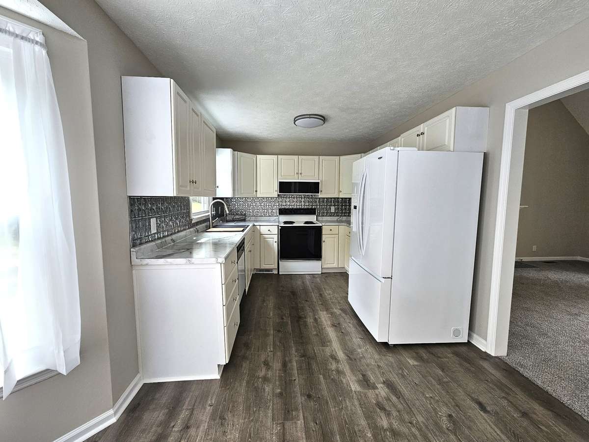 Recently renovated and move- in ready! This lovely two- story brick and vinyl home offers comfort, space, and modern updates throughout. The primary bedrooms with en- suite baths are conveniently located on both the first and second floors, providing flexibility for guests or multi- generational living. Enjoy a bright, two- story living room with a cozy gas/ wood- burning fireplace, perfect for relaxing evenings. The remodeled eat- in kitchen features new Whirlpool appliances and a charming bay window that fills the space with natural light. Upstairs, you’ll find a spacious loft ( gathering room) and a large walk- in closet, while the basement offers a versatile bonus room complete with a kitchenette, full bathroom, and private rear entry — ideal for guests, in- laws, or a home office suite. New carpeting and luxury vinyl plank flooring run throughout the home. Step outside to a rear deck overlooking a beautiful, wooded backyard — perfect for entertaining or quiet morning coffee. Located just 1. 6 miles from I- 65, this home combines peaceful living with convenient access. Many extras — This one’s a must- see!