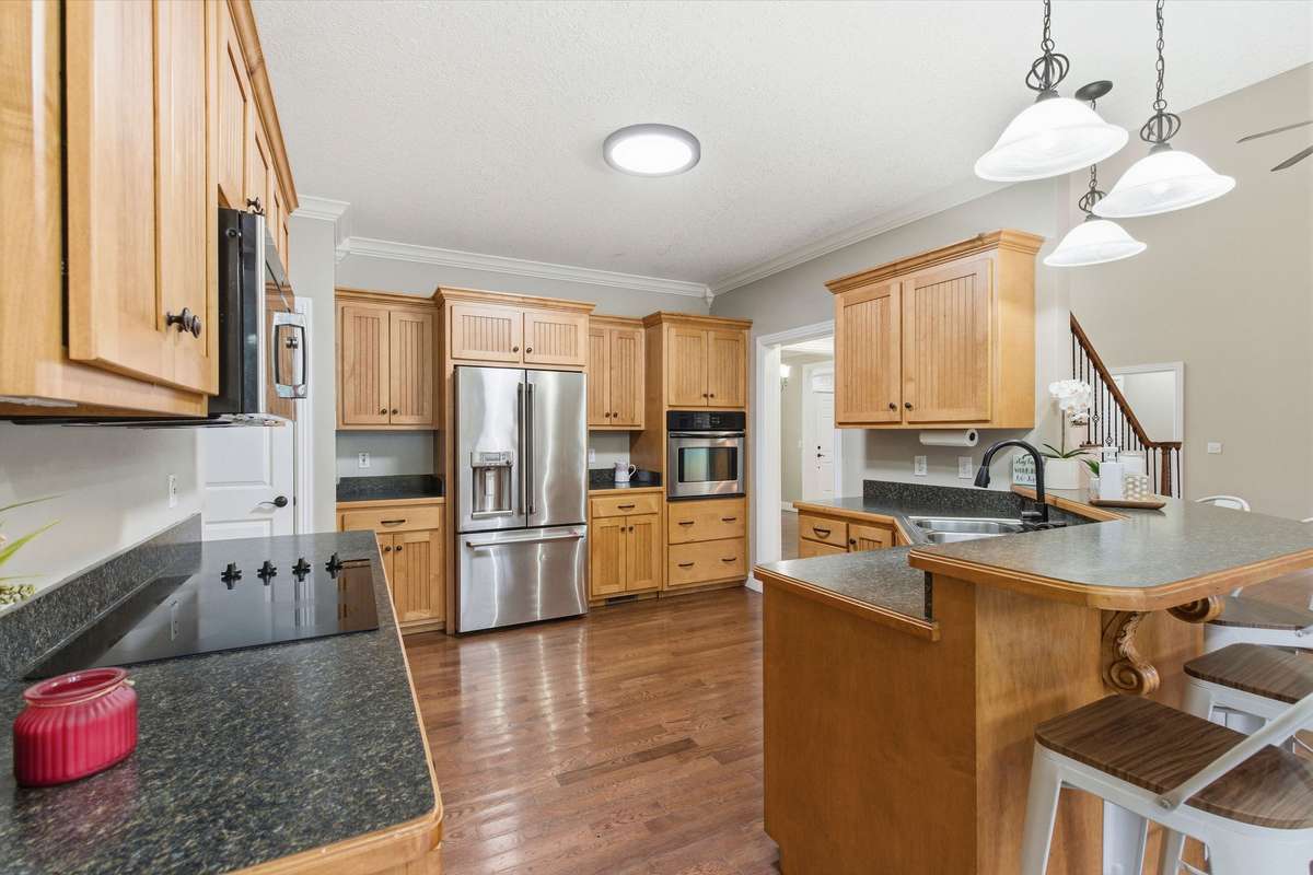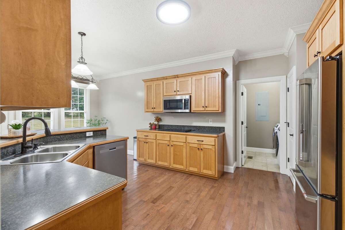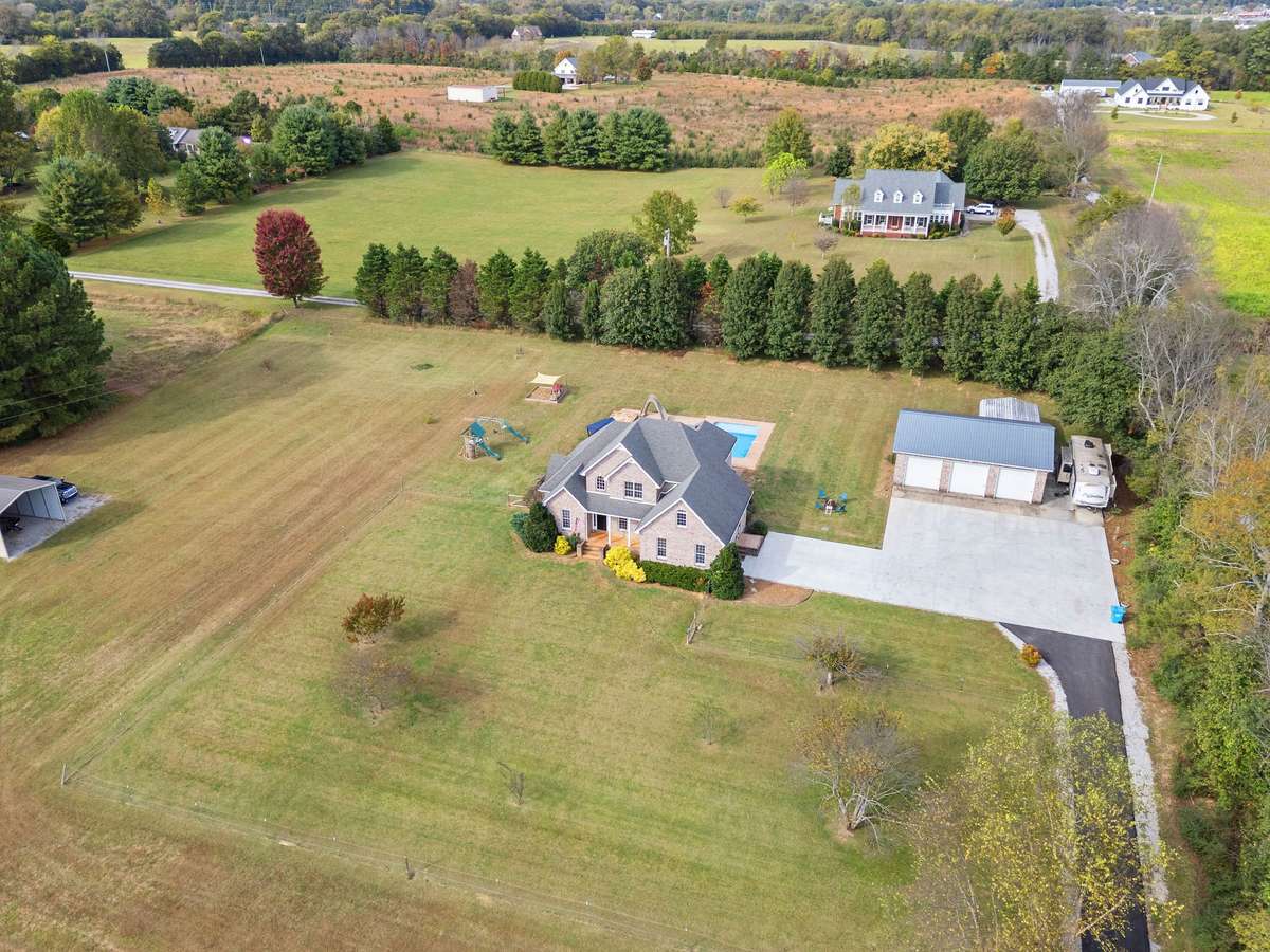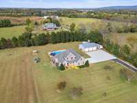 WOW - - ASSUMABLE 2. 5% VA LOAN! Country living at its best - - with so much room for everyone; all the pets and toys, too! This beautiful brick home on 5 level acres offers a huge, insulated 30' x40' 3- bay garage/ shop; plumbed for a bathroom; not yet connected. Inground pool features a waterfall, slide, sitting deck, auto water filler and a beautiful stone tanning ledge. Bring the camper or motor home ( great for guests! ) and take advantage of the 50- Amp service with FULL connections ( water, electric and sewage) by the detached garage! Keep your boat, camper, lawn equipment protected under the 30' + metal boat cover structure to the right of the home. Freshly painted and with new carpeting in the bedrooms, this home is ready to settle in and enjoy! Living room with fireplace has vaulted ceiling and is open to the kitchen. Separate Dining room. Huge den for extra entertainment space. AllGas propane tank is owned by seller; is approximately 60% full. Primary bedroom is downstairs and offers a jacuzzi tub, shower and a newly designed closet. You can have your own mini- farm in Franklin County- - low taxes, too! Ask your agent for a copy of ALL the features and benefits this home offers!