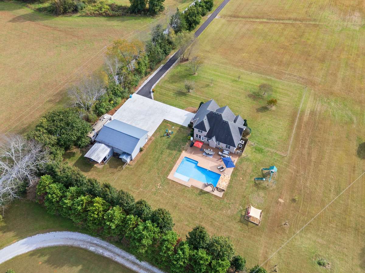 WOW - - ASSUMABLE 2. 5% VA LOAN! Country living at its best - - with so much room for everyone; all the pets and toys, too! This beautiful brick home on 5 level acres offers a huge, insulated 30' x40' 3- bay garage/ shop; plumbed for a bathroom; not yet connected. Inground pool features a waterfall, slide, sitting deck, auto water filler and a beautiful stone tanning ledge. Bring the camper or motor home ( great for guests! ) and take advantage of the 50- Amp service with FULL connections ( water, electric and sewage) by the detached garage! Keep your boat, camper, lawn equipment protected under the 30' + metal boat cover structure to the right of the home. Freshly painted and with new carpeting in the bedrooms, this home is ready to settle in and enjoy! Living room with fireplace has vaulted ceiling and is open to the kitchen. Separate Dining room. Huge den for extra entertainment space. AllGas propane tank is owned by seller; is approximately 60% full. Primary bedroom is downstairs and offers a jacuzzi tub, shower and a newly designed closet. You can have your own mini- farm in Franklin County- - low taxes, too! Ask your agent for a copy of ALL the features and benefits this home offers!