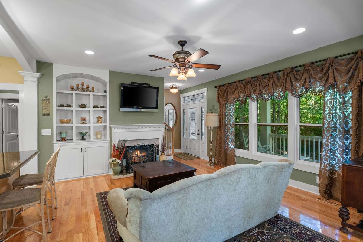 A low- maintenance exterior gives you more time to enjoy the great outdoors. Inside, an open floor plan welcomes you, featuring a spacious living area with built- in cabinets and a cozy electric fireplace just off the expansive kitchen. Sand- and- finish hardwood floors add warmth and character throughout the main and upper levels.