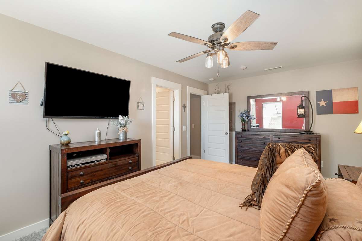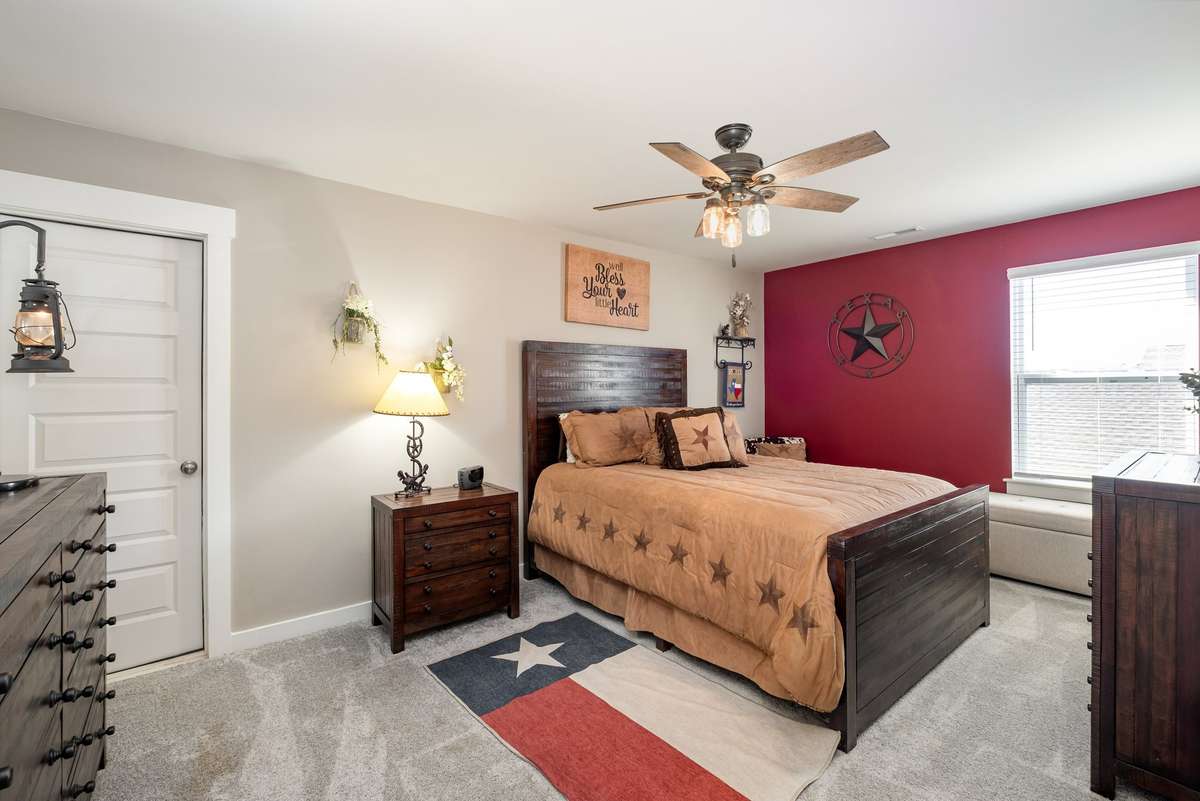 Enjoy outdoor living on the upgraded covered patio overlooking a fenced backyard, perfect for privacy and entertaining. Additional highlights include brick and Hardie plank exteriors, ample closet space, extended fenced yard and professional landscaping.