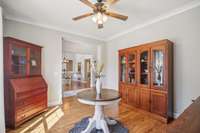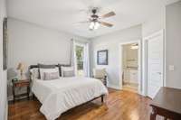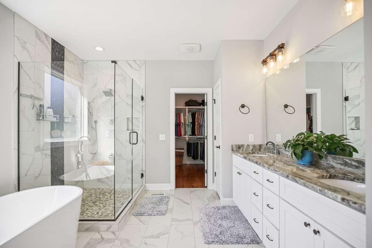 Step inside this gorgeous 3- bedroom, 3- full, 2- half bath home and be immediately impressed by premium details, including upgraded hardwood and tile flooring, custom built- ins, coffered ceilings, and custom closets throughout. The kitchen features a massive gathering island for guests, bright white soft- close cabinetry, a gas cooktop, subway tile backsplash, upgraded Bosch appliances and a sunny breakfast nook. All three bedrooms are conveniently located on the main level. The Primary Suite offers beautiful views, an ensuite with a standing tub, a large tiled shower with a glass enclosure, a dual vanity, and a massive walk- in closet with custom wood shelving. The two secondary bedrooms also boast large walk- in closets and access to private ensuite full bathrooms. The screened porch and patio provide the perfect spots to relax and enjoy amazing views of the private, fenced yard. The property backs directly to Corps of Engineers land, guaranteeing no rear neighbors ever. Property line is to the second fence on left side of home. Additional features include a dedicated office, formal dining space, a great room with a cozy fireplace, a laundry room with a built in cabinet sink and cabinets, and a side- load garage with an epoxy floor. The spacious second- floor bonus room with an attached half bath offers flexible space that could easily serve as a fourth bedroom and also offers access to the attic for extra storage. This home has been lovingly maintained, thoughtfully updated, and is ready for its new owner. Schedule a tour to see this home in person today!