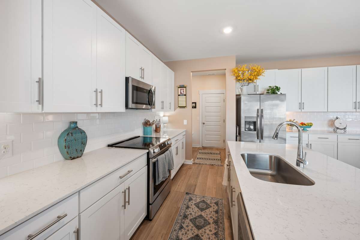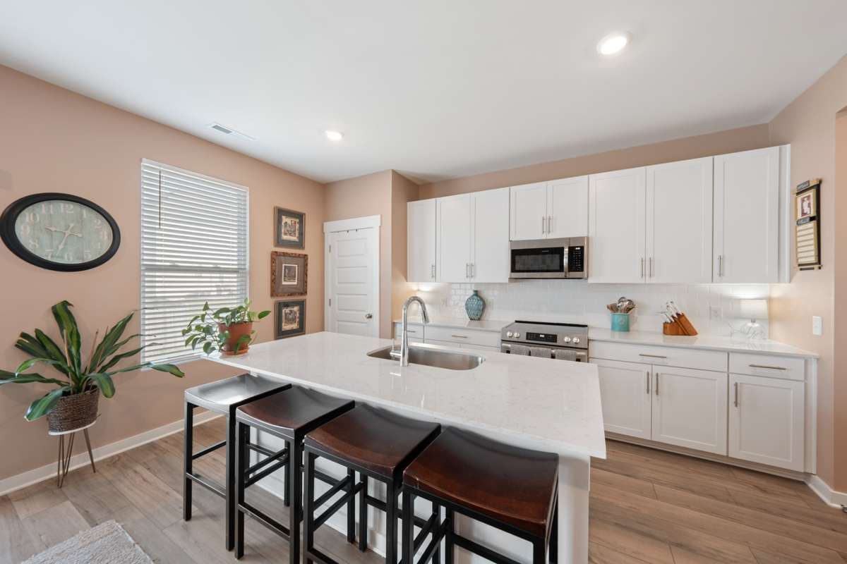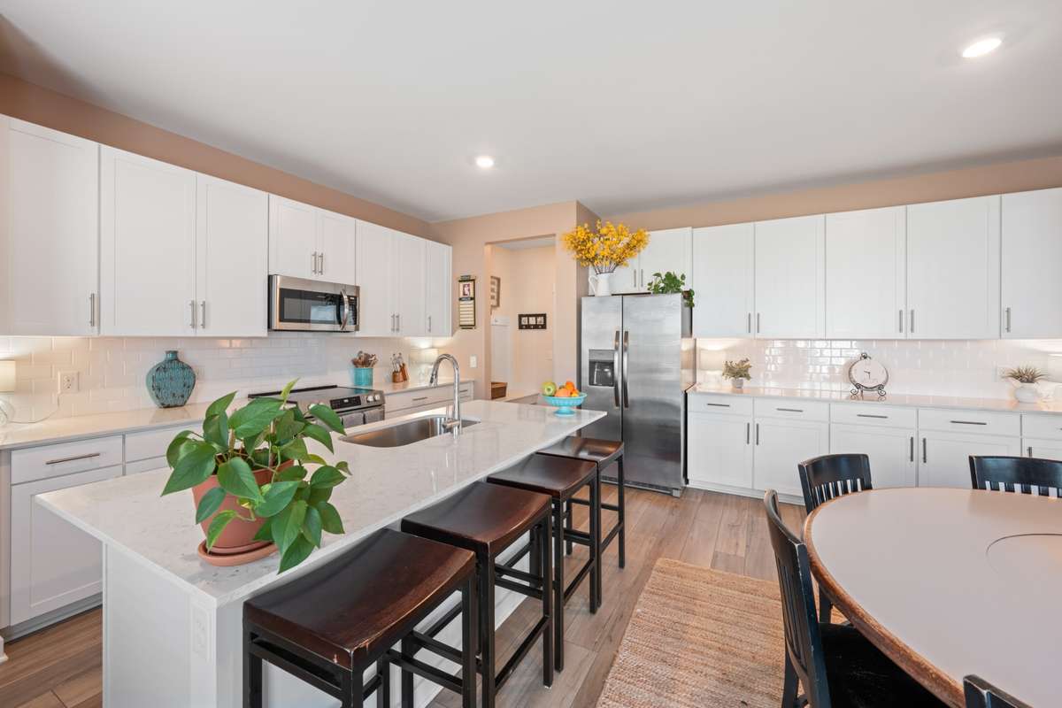 Upstairs is another living area and four more bedrooms and two full baths, including the Owner' s Suite. This 5 bedroom 3 and a half bath beautiful home includes 4' shaker cabinets, subway tile back- splash, quartz couter- tops. The HOA includes pool, playground and sidewalks, club house with access to golf course. This awesome home can be yours now.