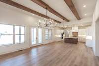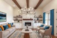 Step inside to discover abundant natural light, gleaming floors, custom wood beam accents, and stylish high- end finishes throughout. The chef’s kitchen is the heart of the home, showcasing quartz countertops, a 36” stainless gas cooktop, KitchenAid double ovens, and ample cabinetry, making it perfect for cooking, hosting, and gathering.