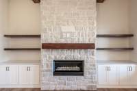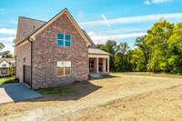 Outdoor living truly shines with the covered back patio, featuring a built- in outdoor fireplace and wood tongue- and- groove ceiling—perfect for year- round entertaining, cozy evenings, or relaxing in style.