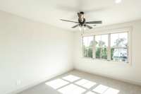 The spacious primary suite offers a private retreat with a luxurious oversized shower and a large walk- in closet. Additional bedrooms provide flexibility for guests, hobbies, or a home office, while a dedicated front office adds ideal work- from- home functionality.