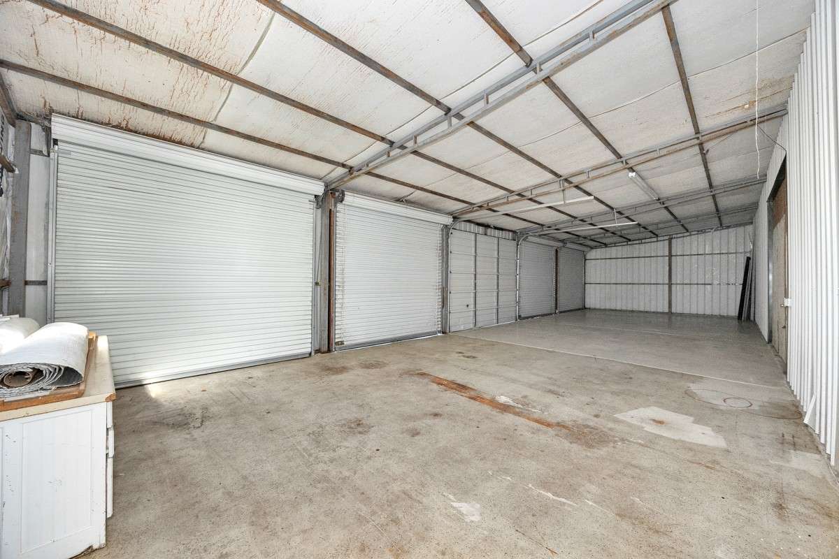 Barndominium influenced metal building on a great 6. 79 acre tract with building site. The 1, 086 sf living quarters are ready for you to live while you build your dream home! With one bedroom, one 3/ 4 bath, kitchen and large great room the living area. Main storage 3, 714sf area has two 14x14 overhead doors, three car garage, enclosed lean- to garage with five overhead doors.