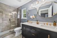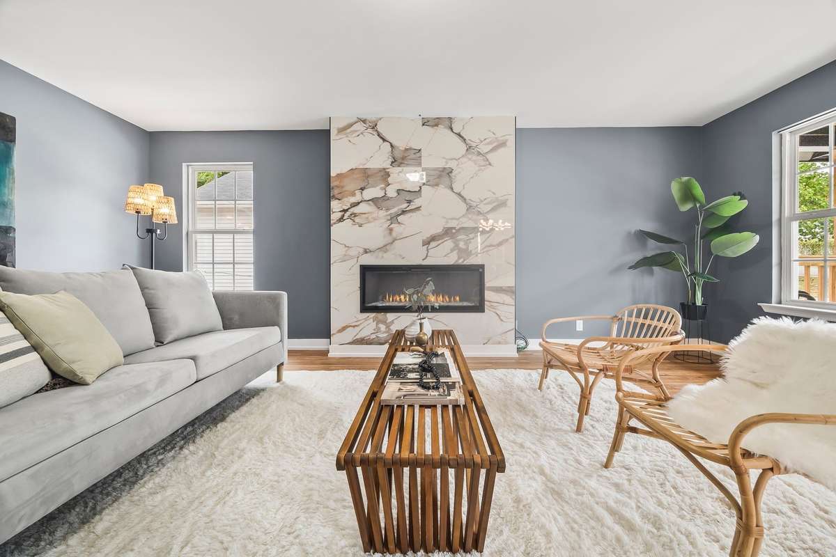 Inside, the 1, 455 sqft floor plan has been completely renovated from top to bottom. A bright, open- concept living area welcomes you with new flooring and abundant natural light, seamlessly connecting to a stylish kitchen outfitted with sleek cabinetry, contemporary fixtures, and brand- new appliances. Two thoughtfully updated bathrooms feature modern tile and designer finishes, while four spacious bedrooms provide plenty of room for family, guests, or a home office.