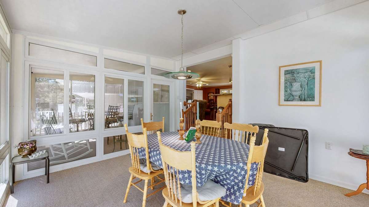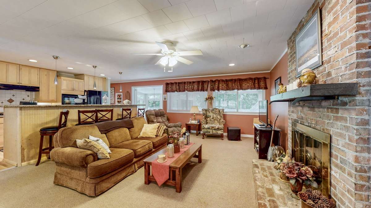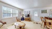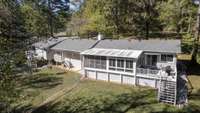 Step inside the main home to an updated kitchen, with 3 BR and 2 updated BAs, as well as a large living area with a gas log fireplace. You' ll enjoy stunning views of sunrises over the water no matter the time of year, compliments of a trifecta of viewing options that include a glass 4 seasons room, a screen porch and two open decks. A partial unfinished basement offers storage.