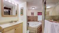 The separate guess house has a full kitchen, a living room and large bedroom, as well as its own laundry room, a full bath and deck. The second home affords ideal privacy for family members and visiting friends. It offers an unfinished basement that can be used for a game room and/ or storage.
