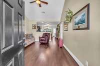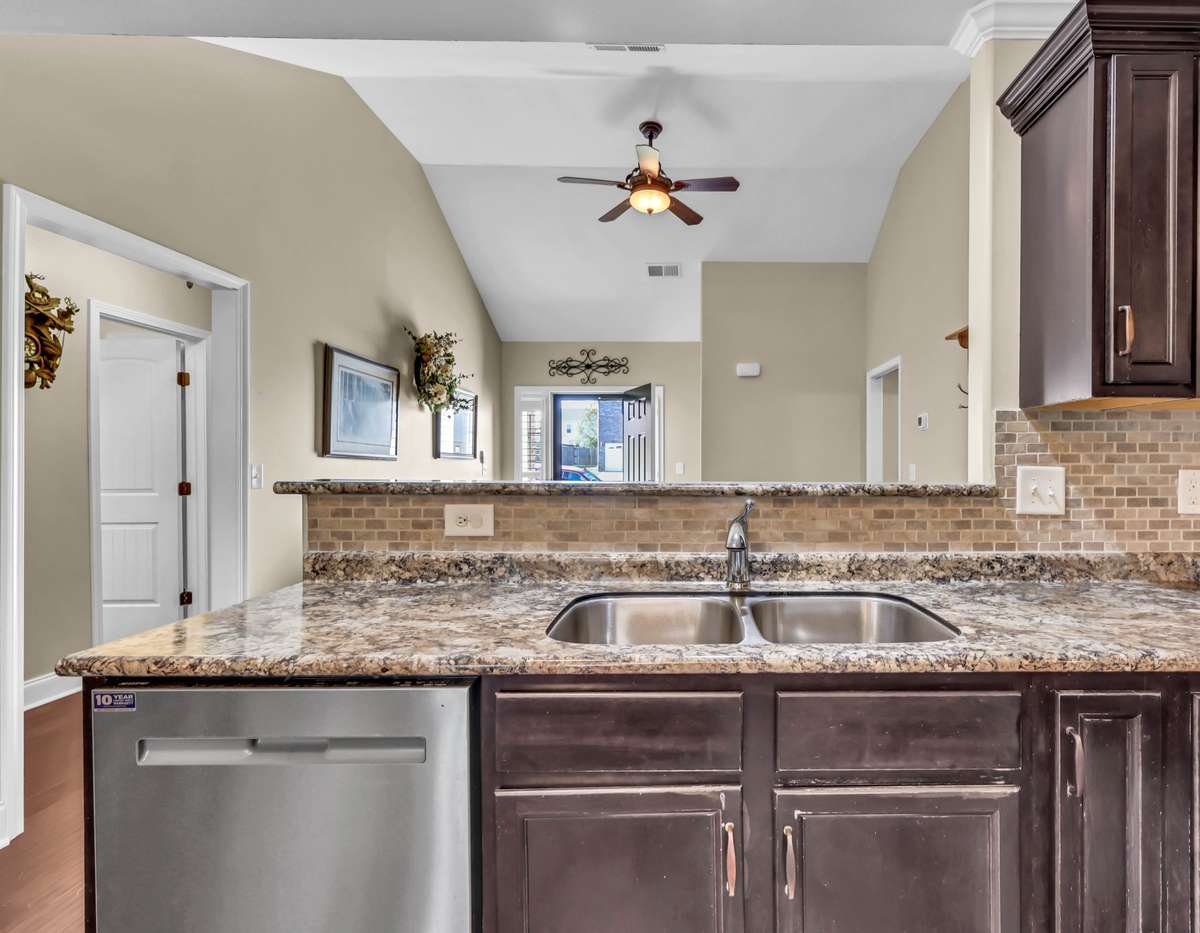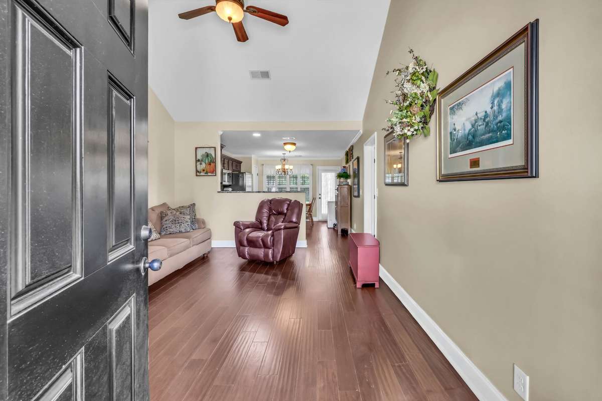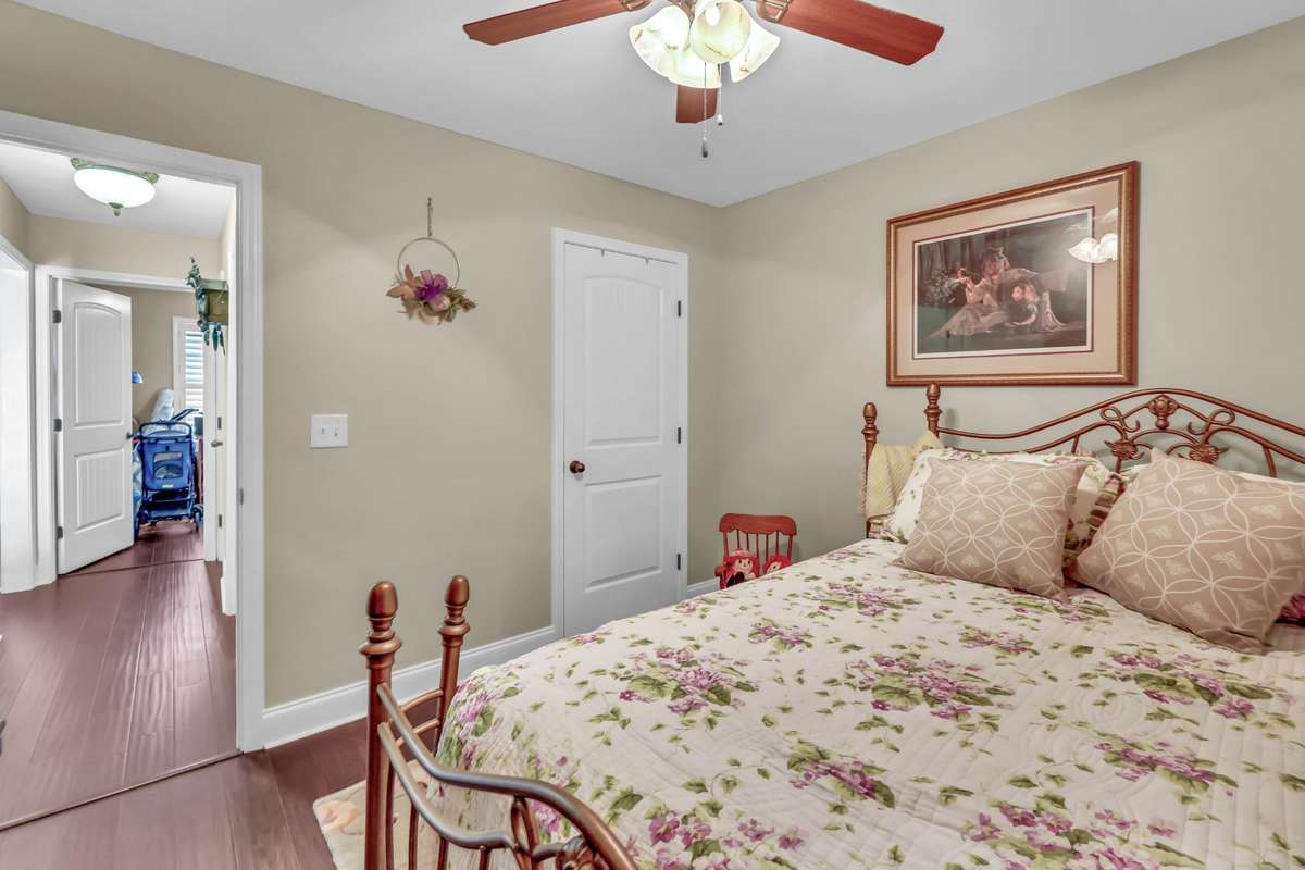 Welcome to this charming 3- bedroom, 2- bath home featuring a spacious' s bedrooms and a large bonus room over a two- car garage. Step inside to find gorgeous wood flooring throughout the downstairs and a cozy living room that opens to a stunning eat- in kitchen complete with tiled backsplash, crown molding, and a pantry. Enjoy relaxing evenings on the screened- in back deck with a ceiling fan, perfect for Tennessee summers! The primary suite offers a serene retreat with a push- out window for extra space, a double vanity, and a large walk- in closet. This home also includes a new water heater, HVAC ( 1 year old) , microwave, stone steps, insulated attic doors, plantation shutters, and custom built- in cabinetry for added storage. Le creme satin screen doors. Garage is equipped with a storm shelter. Come see why this home checks all the boxes. Style, comfort, and functionality all in one beautiful package!