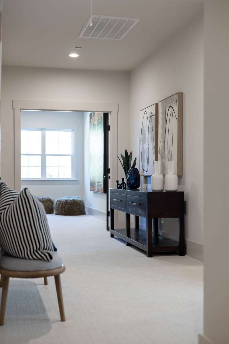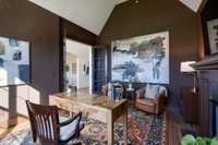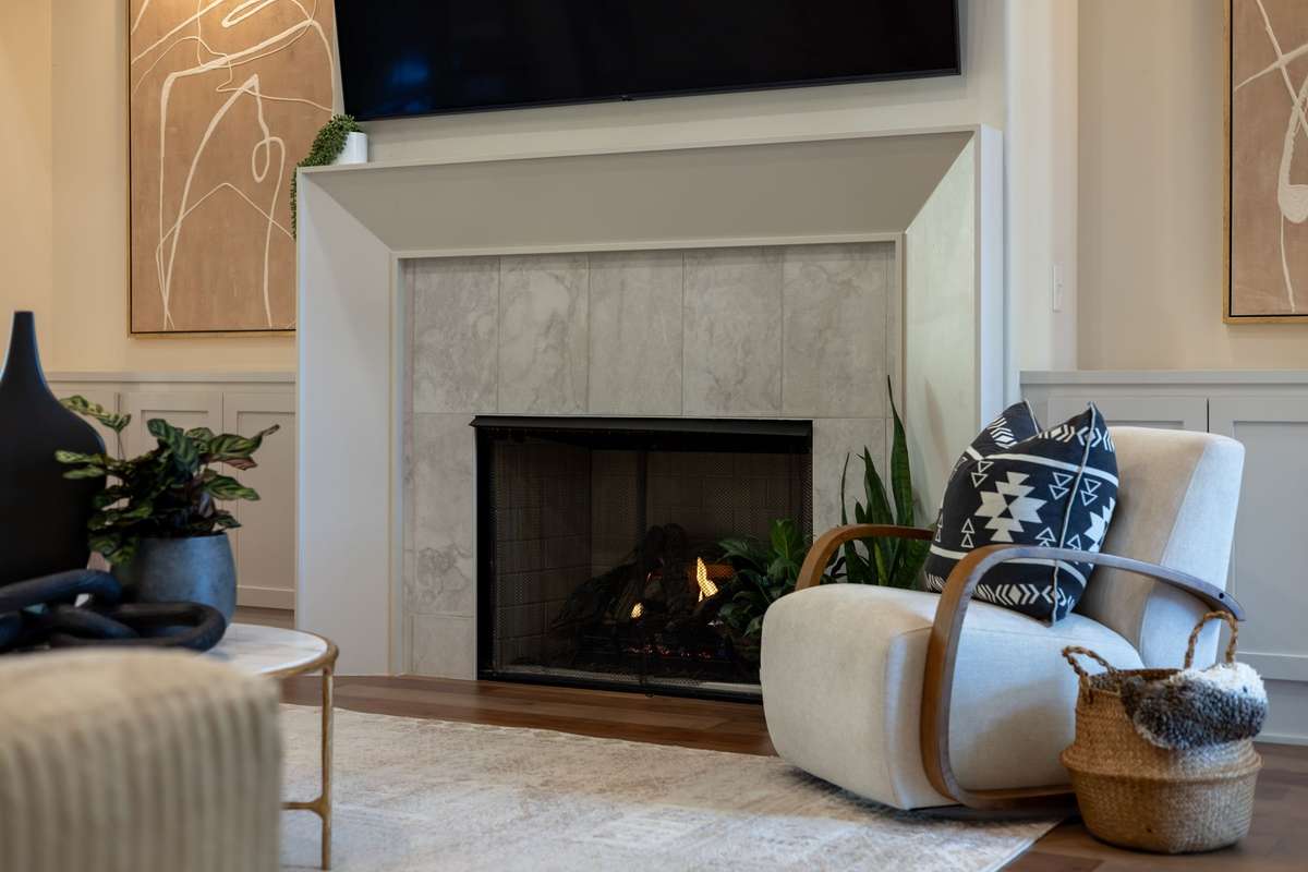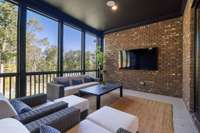 Inside, soaring ceilings & curated finishes create a sense of modern elegance throughout the home. A private office w/ fireplace provides a comfortable workspace or cozy retreat, while the formal dining room glows w/ natural light and is ideal for gatherings both large & small. At the heart of the home, the expansive great room features a gorgeous fireplace flanked by built ins & a wall of glass that opens to a screened outdoor living room that overlooks the private backyard & wooded common area beyond.