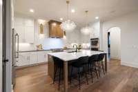 The luxury kitchen is a show stopper w/ professional- grade appliances, custom cabinetry, quartz countertops & a dramatic entertaining island w/ custom lighting. Every finish has been thoughtfully chosen to combine style w/ function. The main- level primary suite is a private sanctuary with vaulted ceilings, huge windows, and a jaw dropping spa- like bath featuring a custom " wet room" . For easy over night stays there is a 1st floor guest suite and a powder room and colorful laundry/ mudroom complete the main level living spaces. Upstairs, three additional bedroom suites offer space & comfort, while a spacious media room sets the stage for Friday movie nights, kids play or Sunday football watching!