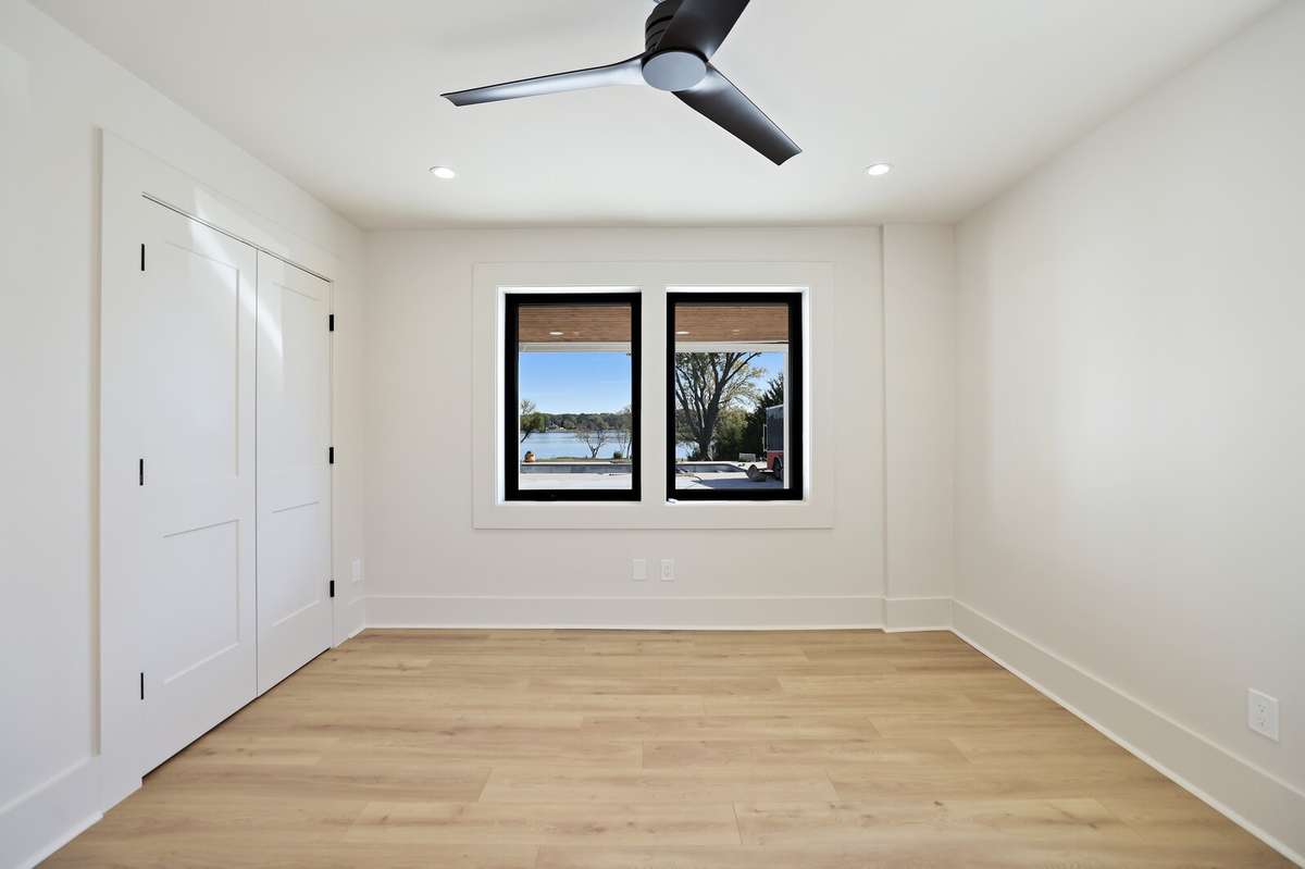 Both primary suites include spa- inspired bathrooms, walk- in closets, and private balconies overlooking the water. The walkout basement offers a full kitchenette, wet bar, gas fireplace, and seamless access to the in- ground pool that overlooks the lake—perfect for entertaining or relaxing with guests.