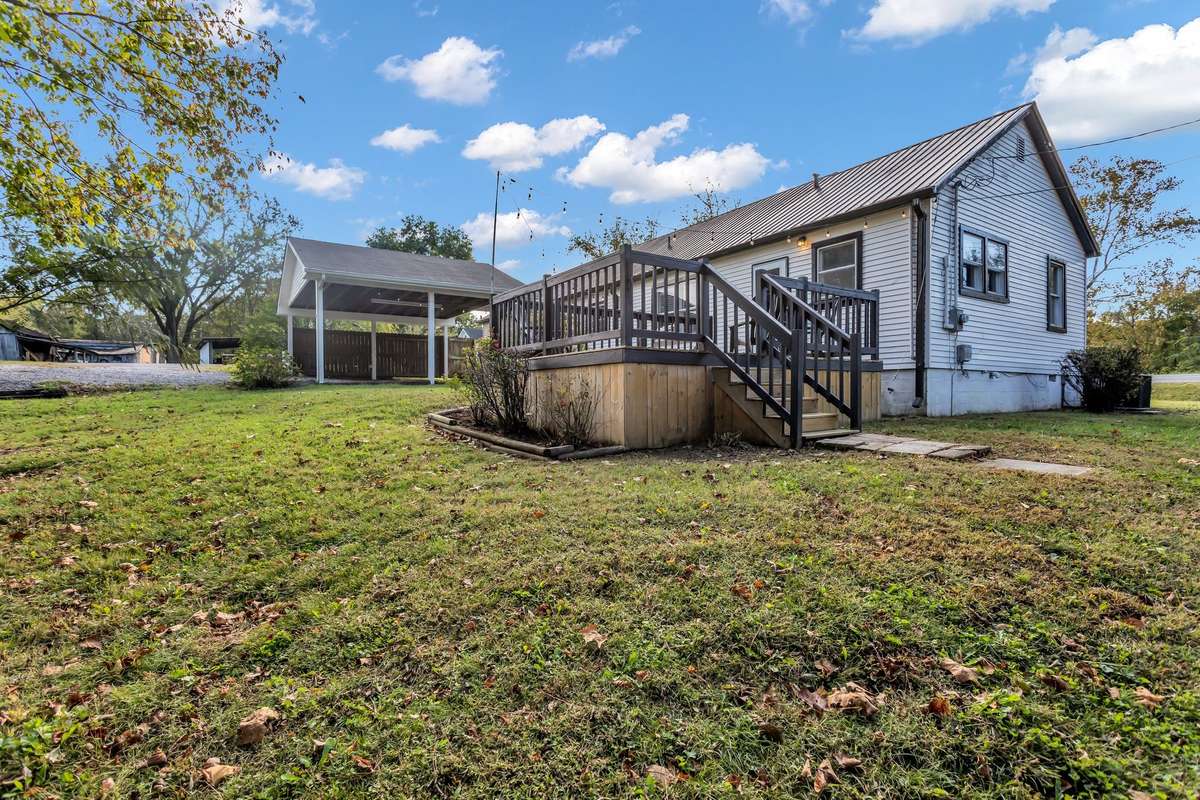 The owner’s suite includes spacious bathroom with a tiled shower. Additional highlights include a dedicated laundry room, covered carport, and a deck overlooking the backyard with a barn- style storage shed.
