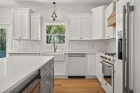 NEW CONSTRUCTION! This spacious 4- bedroom, 3- bath home offers 2, 098 sq ft of comfortable living space with quality finishes throughout. The main level features 3 bedrooms and 2 baths, while the upstairs includes a private bedroom and full bath—ideal for guests or a home office. The kitchen comes equipped with a gas stove and refrigerator, and the home offers abundant storage with extra space throughout. Thoughtful details include custom light fixtures and champagne gold faucets and hardware, adding a touch of elegance to every room. It features Zellige tile the craftsmen style trim. Enjoy the curb appeal of stone and Hardie board siding, a welcoming covered front porch, and a concrete driveway leading to the attached 2- car garage—all set on a beautiful, tree- lined yard.