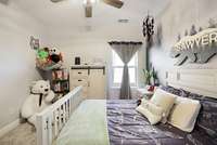 Find your fully fenced, usable, and level BACKYARD with a COMPLETELY WOODED outreaching VIEW that awaits your personal touch. This home is SINGLE STORY living at it' s finest with a NEWLY UPGRADED front door with sunlight windows and a sliding back door for space saving functionality! Warm yourself by a cozy FIREPLACE for the holidays. Enjoy three spacious bedrooms and moreover a LARGE FLEXIBLE space that you can make into your own office, library, play room, or a even guest space. Take special notice that all rooms have ceiling fans installed to keep your loved ones comfortable. That includes your covered BACK PATIO! The kitchen comes equipped with a built- in gas stove stop and a built- in convection oven. The spaces two car garage has additional storage racks hung overhead for all of your holidays storage needs.