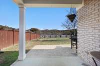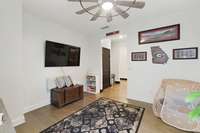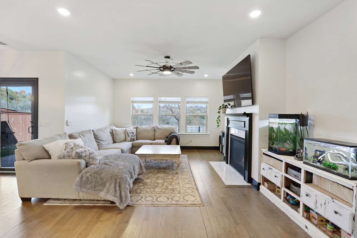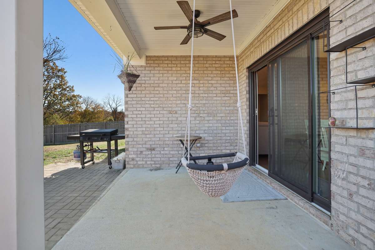 Find your fully fenced, usable, and level BACKYARD with a COMPLETELY WOODED outreaching VIEW that awaits your personal touch. This home is SINGLE STORY living at it' s finest with a NEWLY UPGRADED front door with sunlight windows and a sliding back door for space saving functionality! Warm yourself by a cozy FIREPLACE for the holidays. Enjoy three spacious bedrooms and moreover a LARGE FLEXIBLE space that you can make into your own office, library, play room, or a even guest space. Take special notice that all rooms have ceiling fans installed to keep your loved ones comfortable. That includes your covered BACK PATIO! The kitchen comes equipped with a built- in gas stove stop and a built- in convection oven. The spaces two car garage has additional storage racks hung overhead for all of your holidays storage needs.