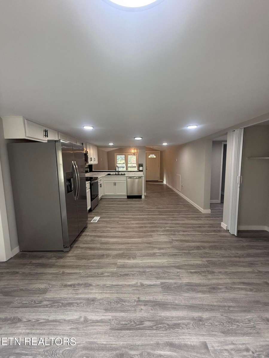 Step inside to find new luxury vinyl plank flooring throughout and tile in the bathroom, giving the home a fresh, clean look that' s easy to maintain. The open- concept layout makes the living room with vaulted ceiling, dining, and kitchen areas flowing seamlessly—perfect for everyday living or entertaining guests. The kitchen features all new appliances, stylish finishes, and ample cabinet space to make cooking a joy.