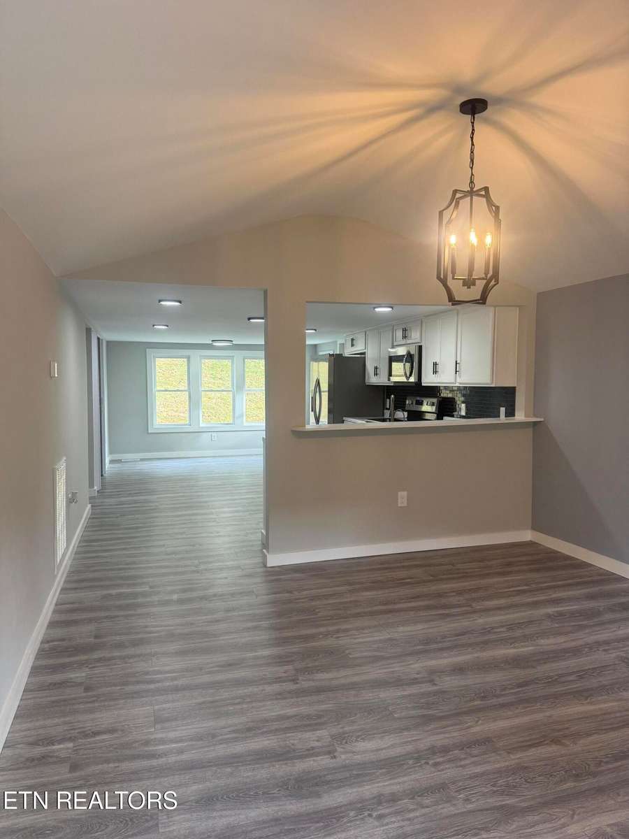 Step inside to find new luxury vinyl plank flooring throughout and tile in the bathroom, giving the home a fresh, clean look that' s easy to maintain. The open- concept layout makes the living room with vaulted ceiling, dining, and kitchen areas flowing seamlessly—perfect for everyday living or entertaining guests. The kitchen features all new appliances, stylish finishes, and ample cabinet space to make cooking a joy.