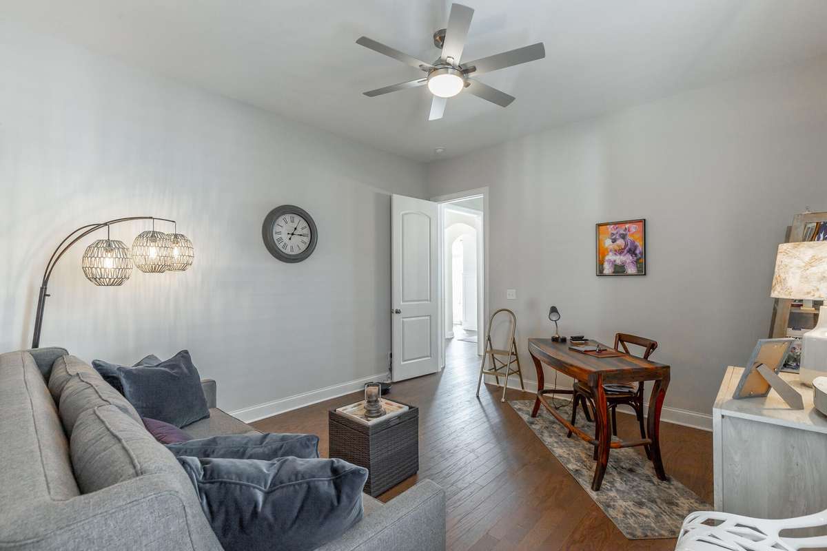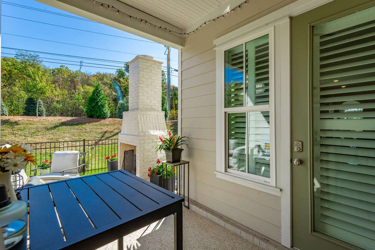 . The charming exterior sets this tone a part from others in the neighborhood — a gas lantern glows beneath an arched front porch, leading to an impressive 8- foot entry door. Inside, 10- foot ceilings create a bright, airy feel, while the foyer opens gracefully with arched transitions to both the dining/ flex room and the main living area.