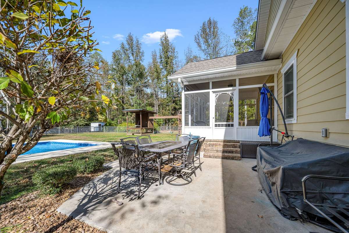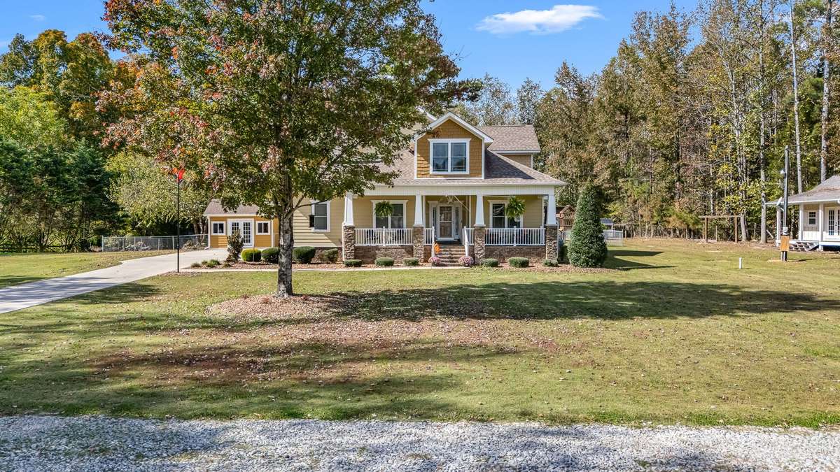 Experience the best of mini- farm living with this beautiful property situated on approximately 6. 2 unrestricted acres of land with no city taxes. Offering just under 3, 000 square feet of finished living space, this home combines modern comfort with timeless charm. Inside, you’ll find 5” handscraped walnut floors, a spacious great room with soaring ceiling, a formal dining room filled with natural light, and an inviting eat- in kitchen designed for the cook at heart—complete with custom cabinetry, granite countertops, and a pantry closet. The primary suite, located on the main level, provides a private retreat with separate vanities, a jetted tub, walk- in shower, and a large walk- in closet. Upstairs, two guest bedrooms each feature walk- in closets and ceiling fans, along with a versatile office space with built- in cabinetry and a large recreation room with a gas fireplace and vaulted ceiling. Additional highlights include an oversized two- car garage with a built- in storm shelter, a 30x36 workshop with electricity & 20X30 concrete pad and walkway. Professional landscaping enhances the property’s natural beauty. Outdoor living is at its best with a screened- in porch, an inground pool ( Sept/ Oct 2024) , she- shed wired for electricity, chicken coop w/ separate fenced area & lien- too. children’s playset, and more. A separate guest cottage offers its own kitchen, bathroom, and sleeping area—perfect for visitors, rental potential or extended stays. This property is a rare find, offering the peace and charm of country living with the convenience of being close to town amenities.