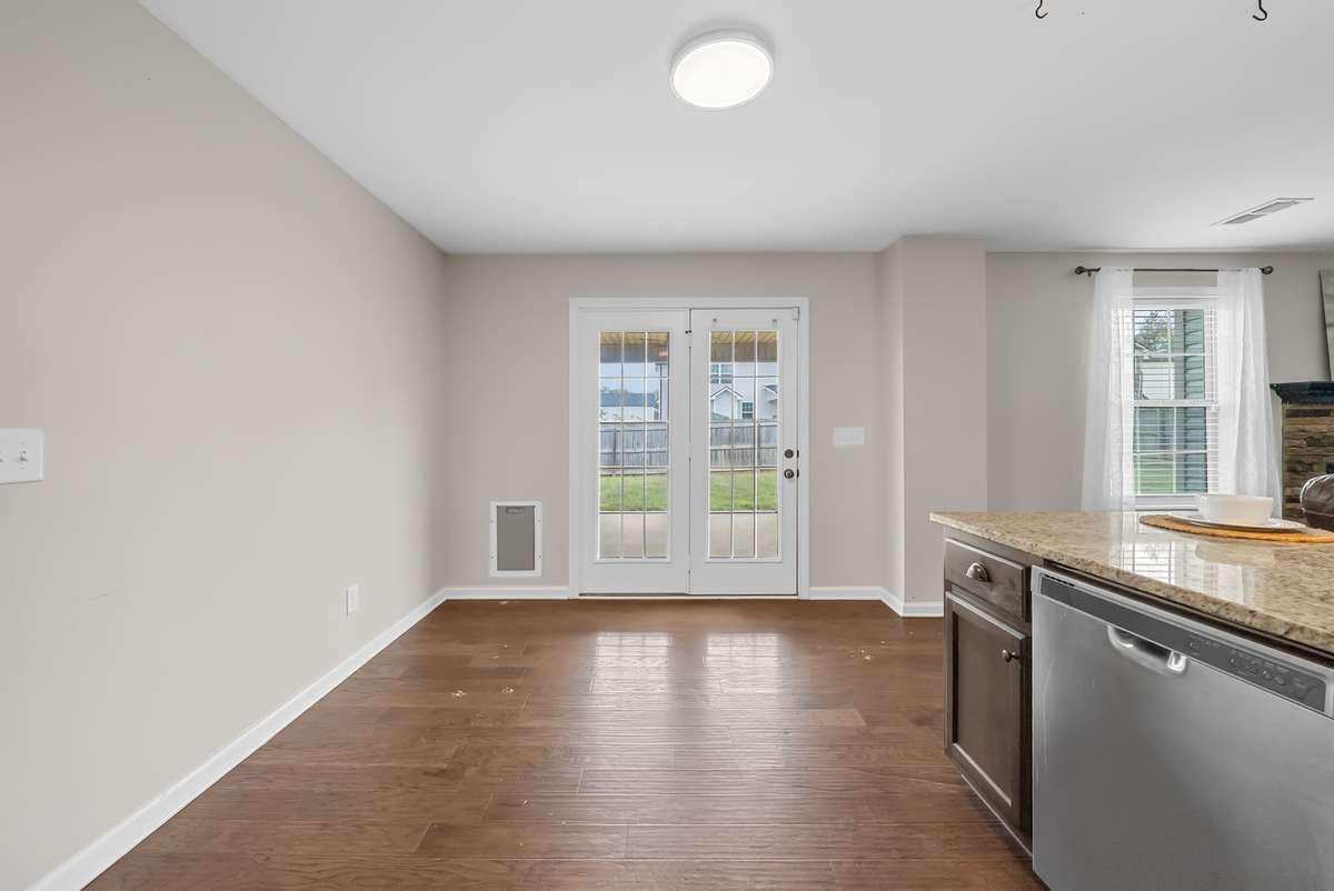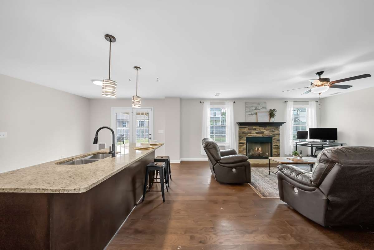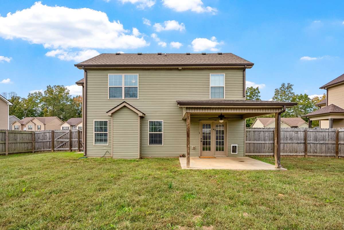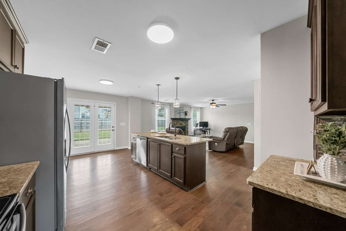 Beautiful 3- bedroom, 2. 5- bath home in the desirable Liberty Park community featuring two playgrounds ( walking distance to playground 1) and a neighborhood pond. This home offers LVP flooring on the main level, a spacious living area with a gas fireplace, and a modern kitchen with granite countertops, stainless steel appliances, a large island, and a roomy eat- in area. The master suite includes a large bath with double vanities, a soaking tub, and a walk- in closet. Enjoy outdoor living on the covered front porch or the covered concrete patio overlooking the privacy- fenced, flat backyard. Schedule your showing today!