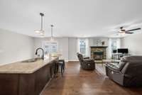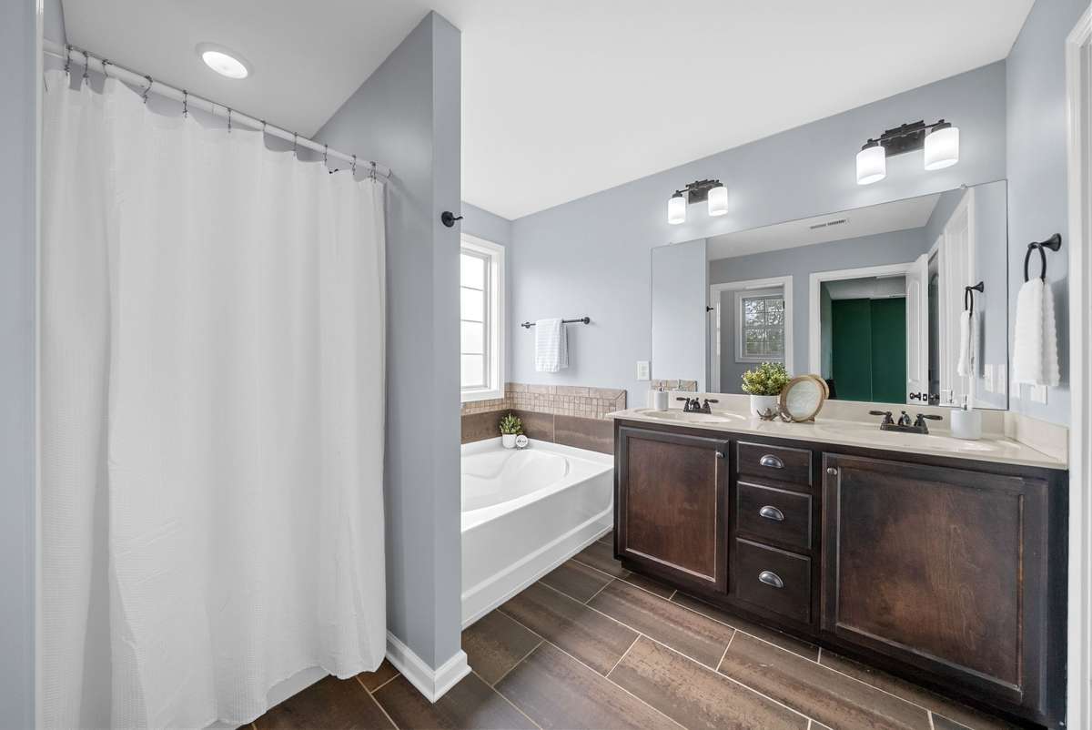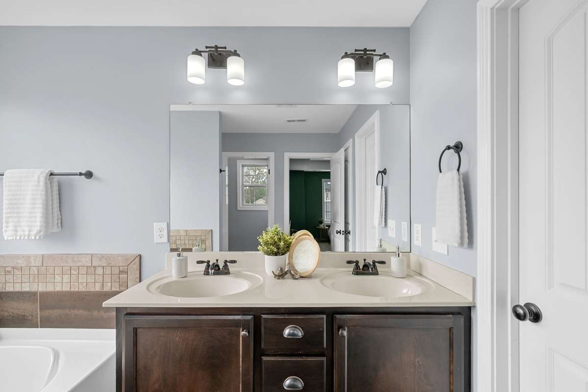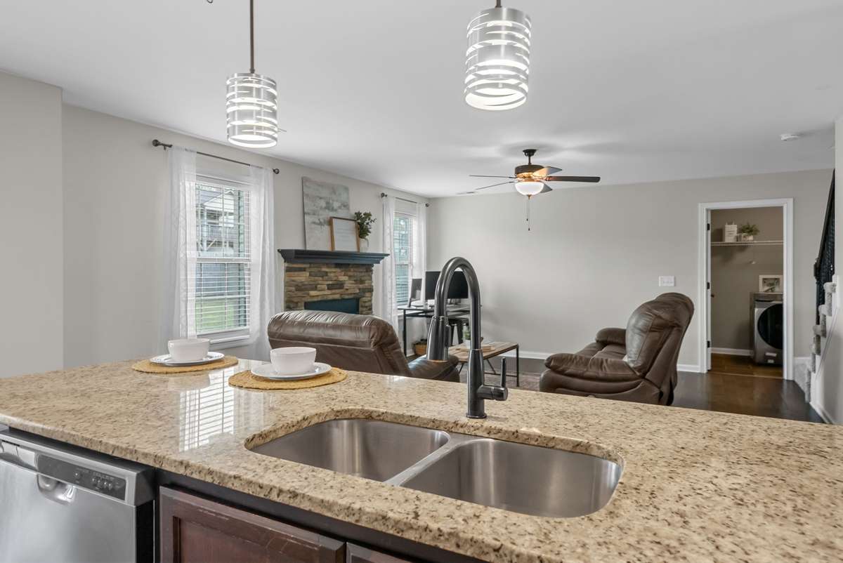 Beautiful 3- bedroom, 2. 5- bath home in the desirable Liberty Park community featuring two playgrounds ( walking distance to playground 1) and a neighborhood pond. This home offers LVP flooring on the main level, a spacious living area with a gas fireplace, and a modern kitchen with granite countertops, stainless steel appliances, a large island, and a roomy eat- in area. The master suite includes a large bath with double vanities, a soaking tub, and a walk- in closet. Enjoy outdoor living on the covered front porch or the covered concrete patio overlooking the privacy- fenced, flat backyard. Schedule your showing today!