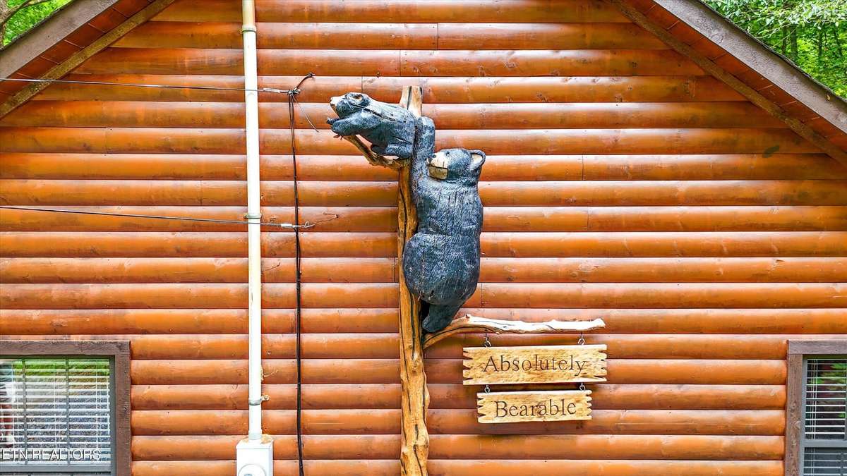 Welcome to Absolutely Bearable — the charming bear- themed cabin in the Sky Harbor subdivision that' s as cute as its name! From the moment you arrive, you' ll be greeted by the wooden bears peeking over the roof at the entrance and the two more keeping watch along the side of the cabin. Freshly graveled parking makes for an easy arrival a long with seeing the recently stained cabin and deck, and once inside, you' ll notice the kitchen and bathroom/ laundry room have brand new flooring for a fresh, updated feel.