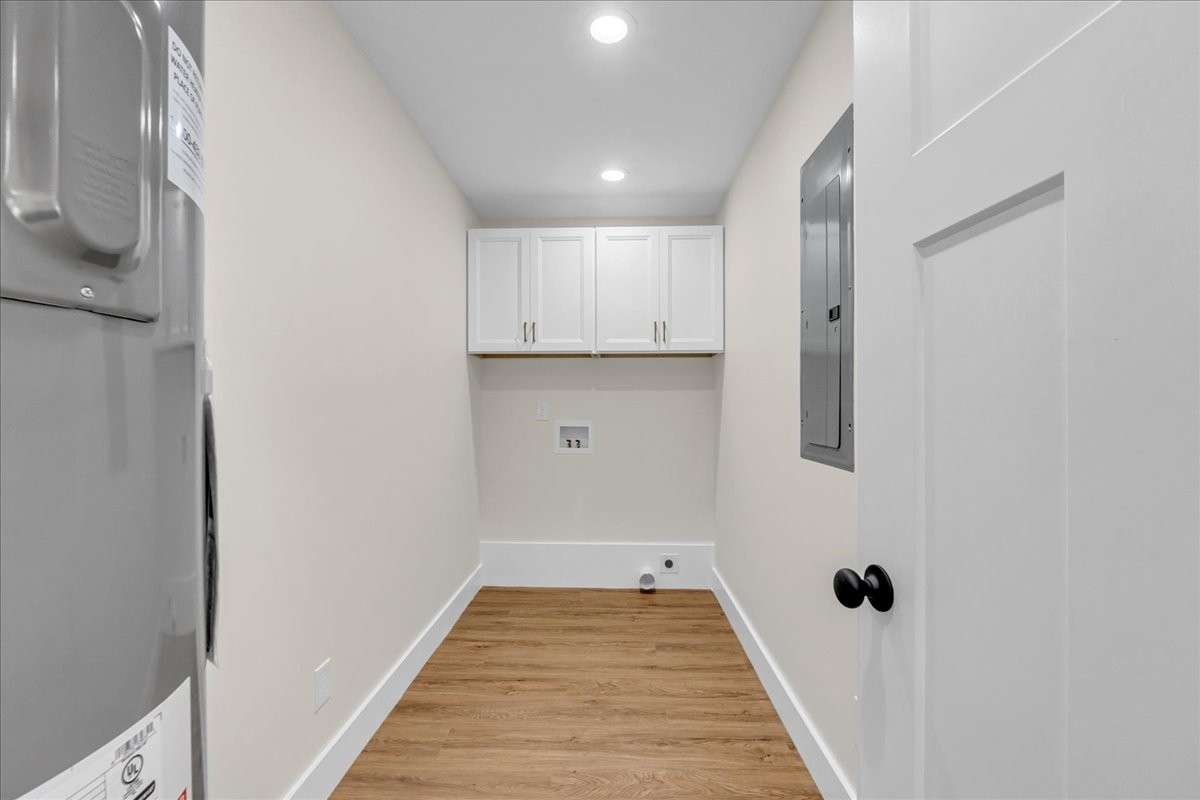 Step inside to find vaulted ceilings that create an open, airy feel. The kitchen and bathrooms feature sleek quartz countertops, white subway tile backsplash, modern two- tone cabinets, and elegant gold hardware for a touch of luxury. The primary suite includes a private shower, offering a comfortable retreat.