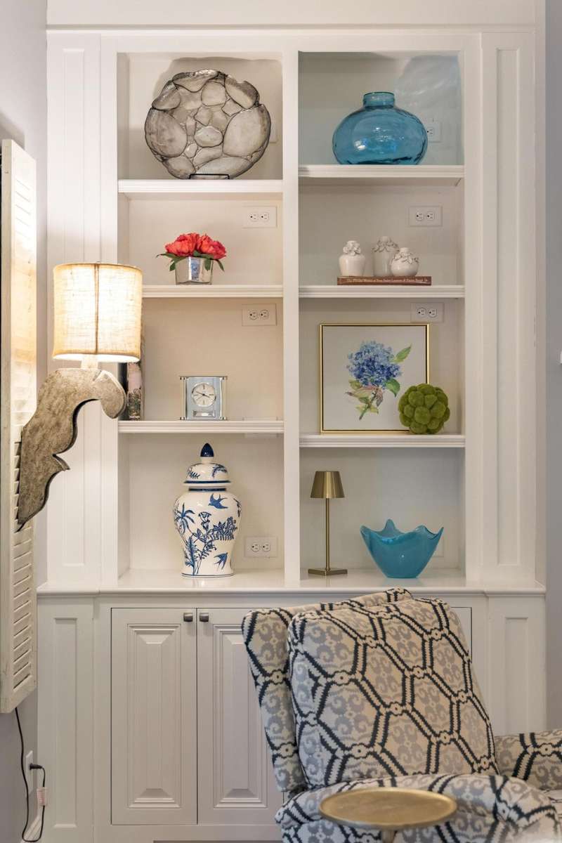 Outdoor living is exceptional- a peaceful oasis overlooking a beautiful lake with a wood- burning fireplace, outdoor kitchen, and a spacious patio ideal for gatherings