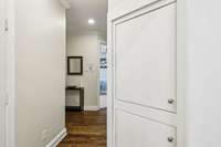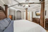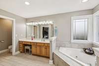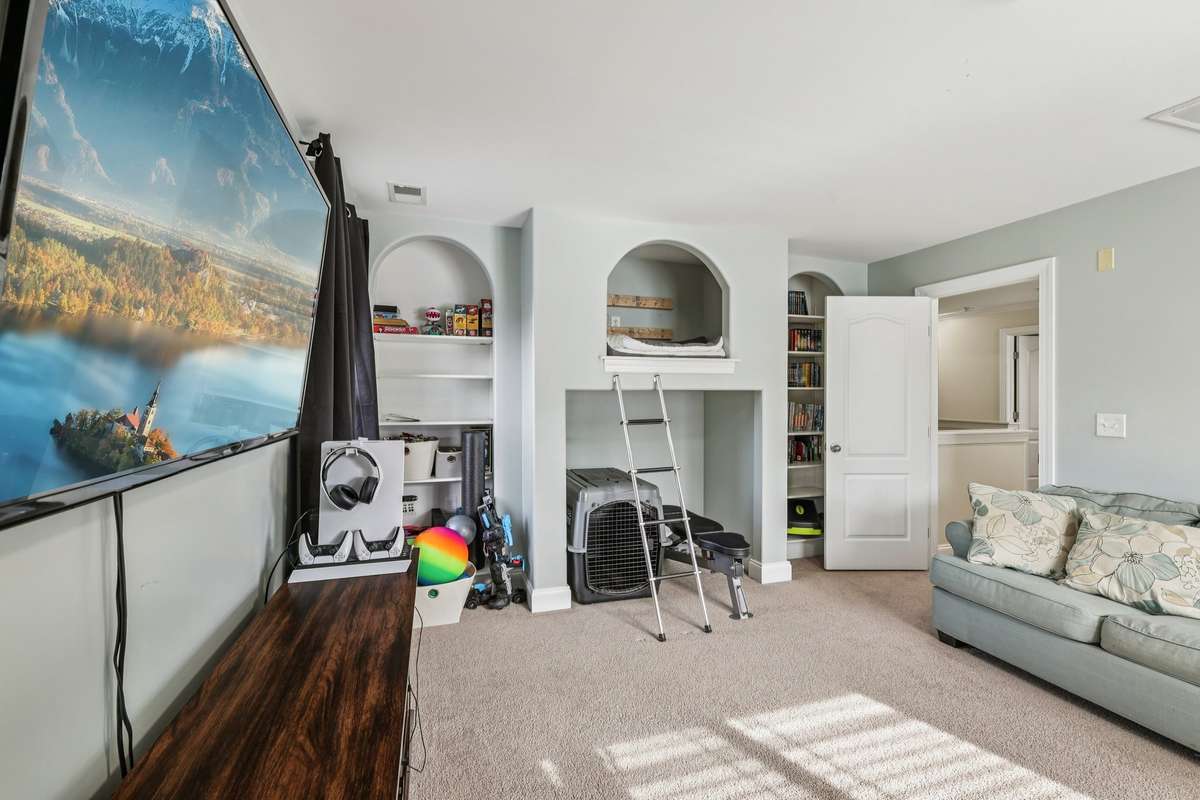 The main level showcases beautiful hardwood floors and a custom- built storm shelter discreetly located under the staircase, providing both safety and peace of mind. Upstairs, you’ll find four spacious bedrooms, including a luxurious primary suite with an ensuite bath featuring a garden tub, double vanities, and a separate tiled shower. A large bonus/ flex room offers additional space for a media room, playroom, or home gym.
