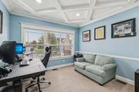 This gorgeous residence offers an inviting, open- concept layout with thoughtful upgrades throughout. The chef’s eat- in kitchen features stainless steel appliances and plenty of space for entertaining. Enjoy an oversized family room, a private office with glass French doors and a coffered ceiling. Enjoy seamless indoor- outdoor living with a large deck and fenced backyard. The attached two- car garage includes an epoxy floor and overhead storage for added convenience.
