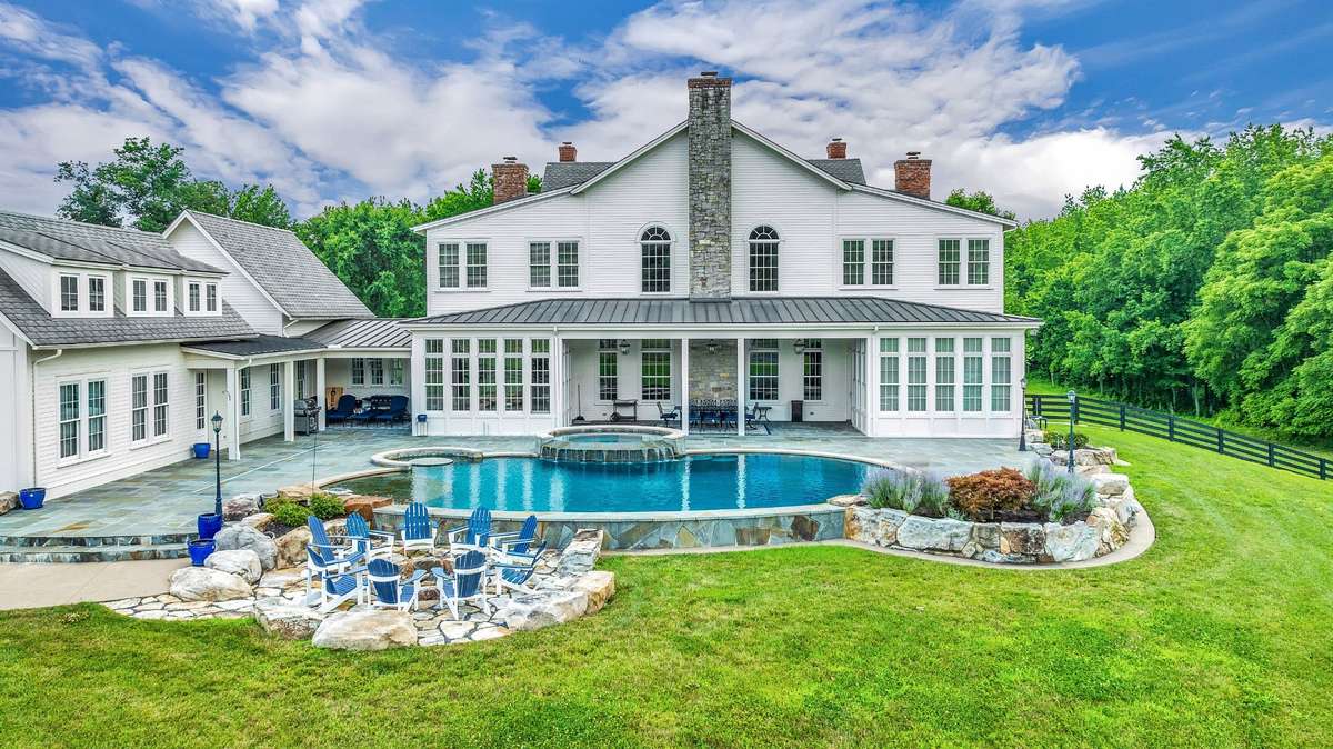 Step outdoors to your private resort: a 10 person spa infinity pool with waterfall and sun ledge, lighted pickleball court, and a picturesque lake with fountain and concrete pier — ideal for elegant entertaining. A five- car garage with attached workshop, plus a modern barn with wraparound porch and glass garage doors, complete the estate. Every path from the main home connects seamlessly to the court, barn, lake, and fenced dog run.
