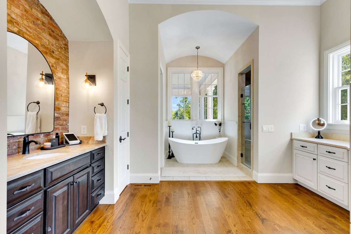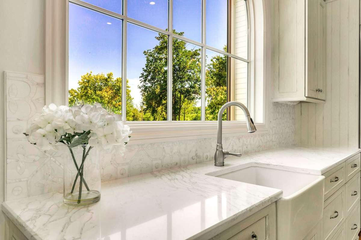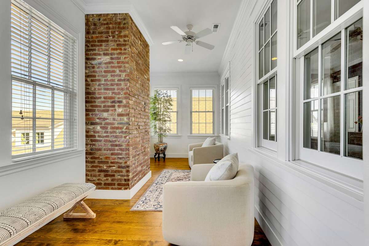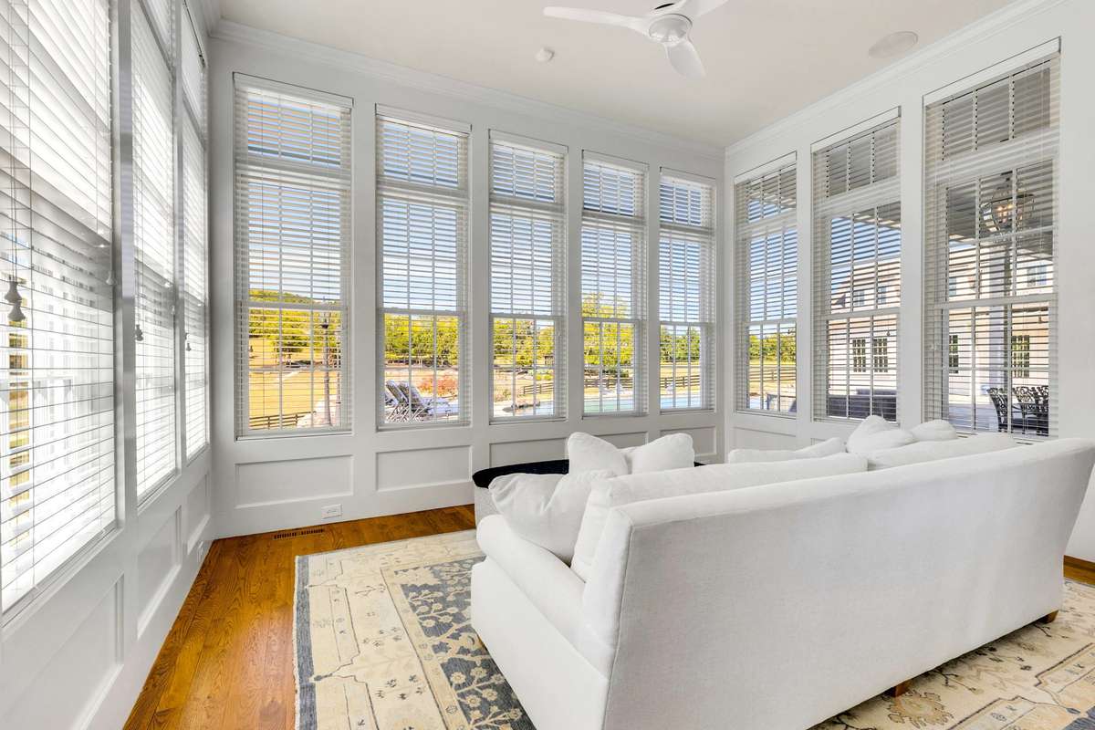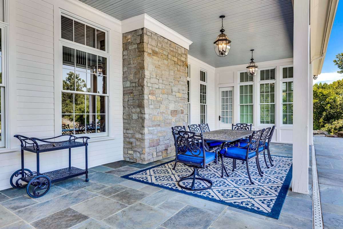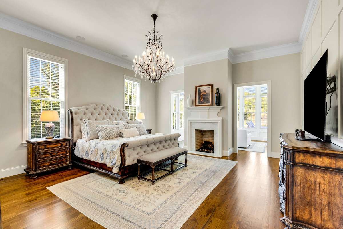 Inside, soaring 35- foot vaulted ceilings and five custom brick fireplaces set the stage for grand yet inviting living. The chef’s kitchen is a culinary masterpiece, complete with an adjacent prep kitchen and sweeping views from every window. Each of the five spacious bedrooms features its own ensuite bath, with three offering private, climate- controlled sitting porches perfect for reading or quiet reflection.