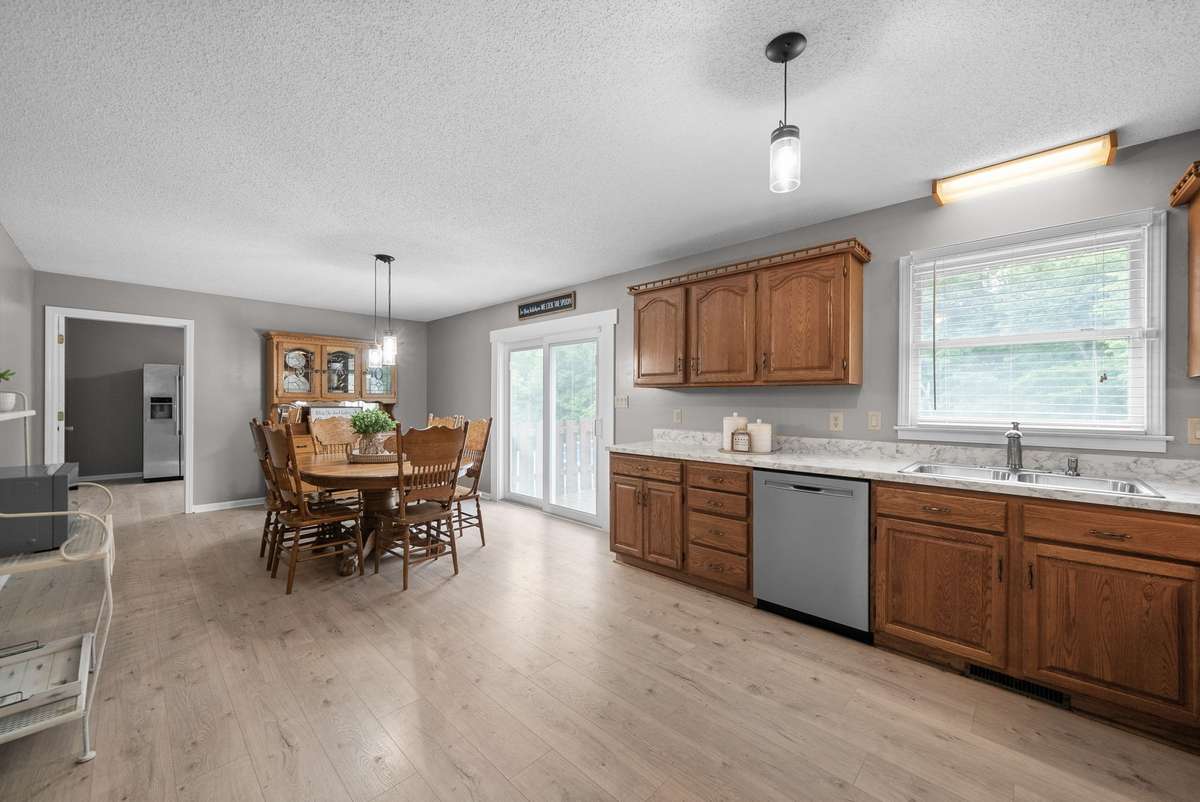 Welcome to this spacious home with over 2, 500 square feet of living space, set on 5 unrestricted acres with county taxes only. BRAND NEW HVAC for upstairs just installed! - Located on a dead- end street, the property offers both open yard space and wooded areas for added privacy. A large covered front porch provides peaceful views of surrounding farmland. Inside, you’ll find a picture- perfect kitchen with modern updates and a large dining area - perfect for gatherings! The main- level primary suite features a jacuzzi tub, step- in shower, and sliding glass doors leading to a large deck overlooking the pool. Upstairs, you' ll find three generously sized bedrooms and a full bathroom. The main floor also includes a spacious utility room and a versatile bonus space. Recent updates include a new roof, new appliances, new carpet upstairs, and new flooring on the main level. Two- car basement garage AND large detached garage so bring the toys! - Could this be YOUR forever home? Schedule your showing today!