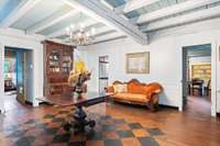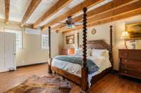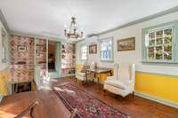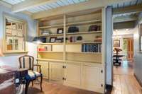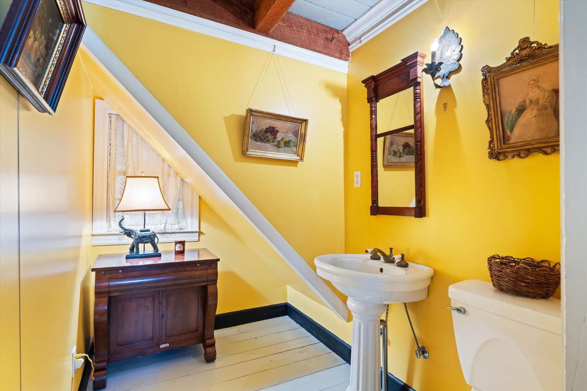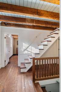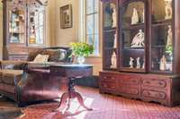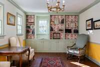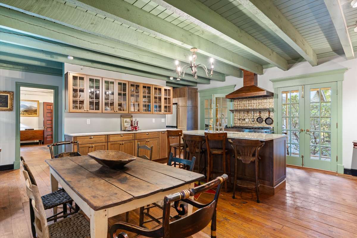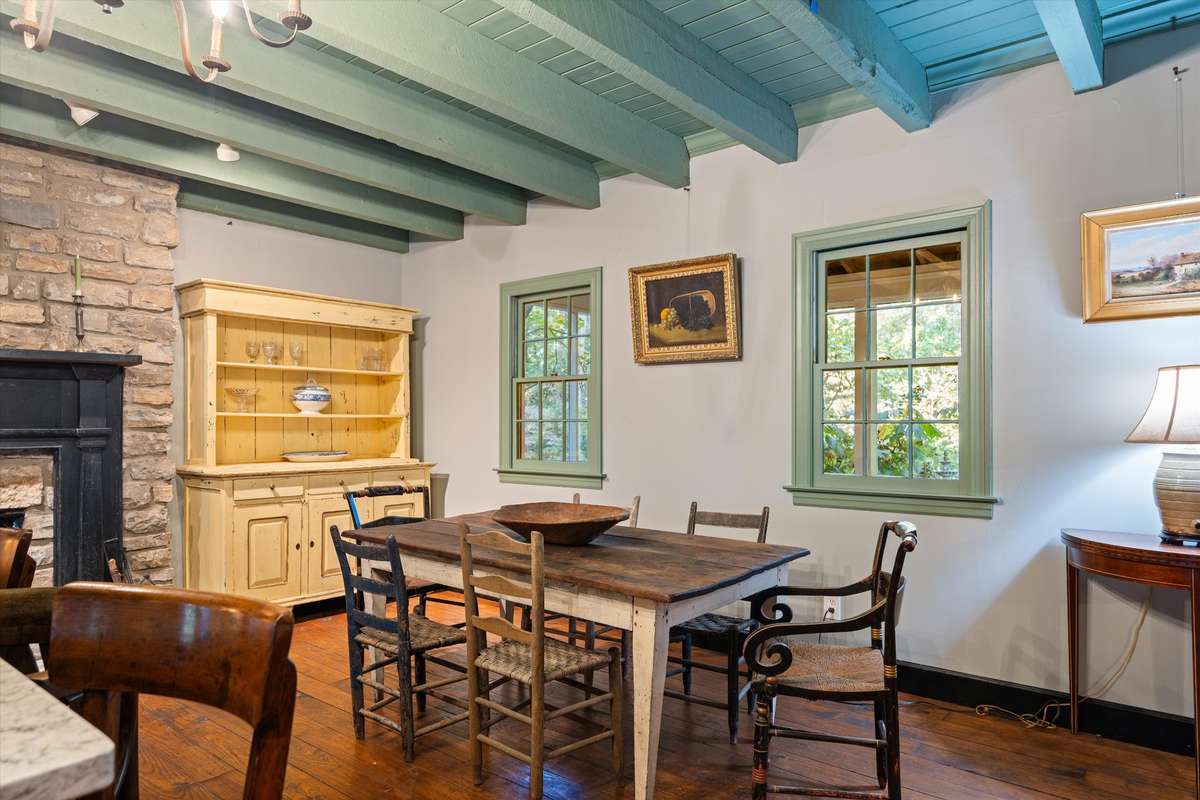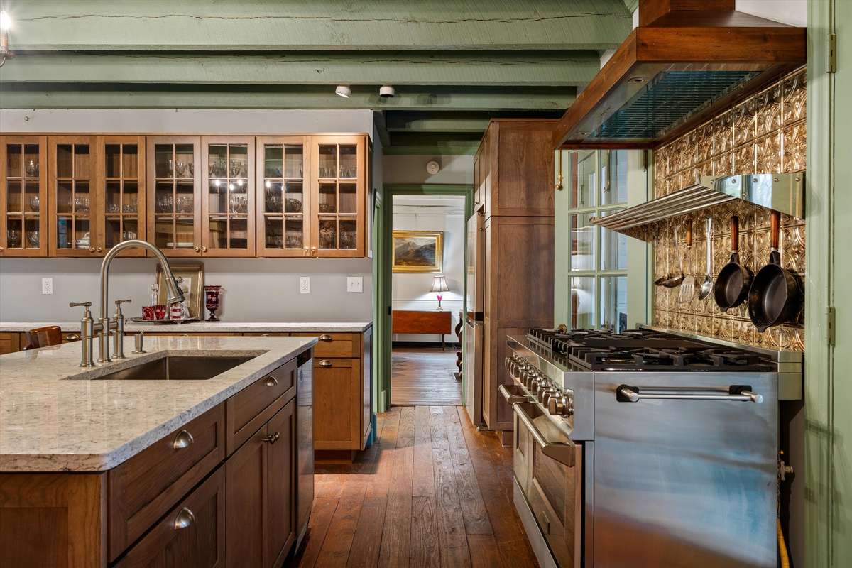 A second and third fireplace anchor both the kitchen and the home' s original " summer kitchen, " now reimagined as an intimate speakeasy and wine room. Down a short hallway lies the powder room and an office that opens to the back porch. Upstairs, you find the main bedroom and bath, a charming library, and a loft with closets that doubles as another bedroom.