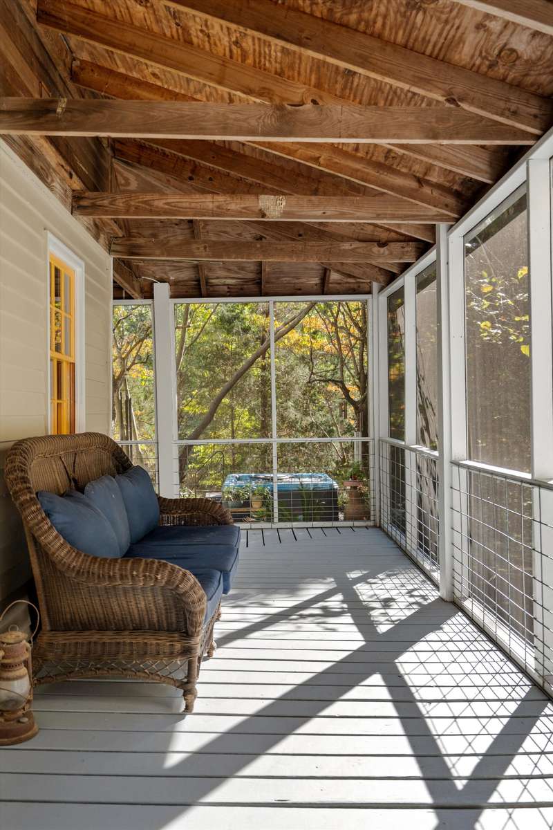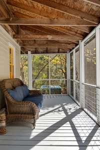 The Cottage, originally built in 1978 with additions in 1985 and 2002, is wrapped with deep screened- in porches, and features a dramatic living room with soaring ceilings and a Rumford fireplace. It' s a place where one could imagine the likes of Truman Capote, Robert Penn Warren, and Alice Walker trading stories around the fire, sipping a fine whiskey.