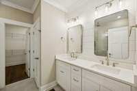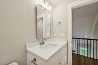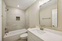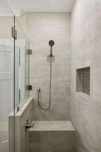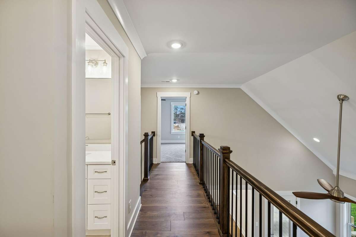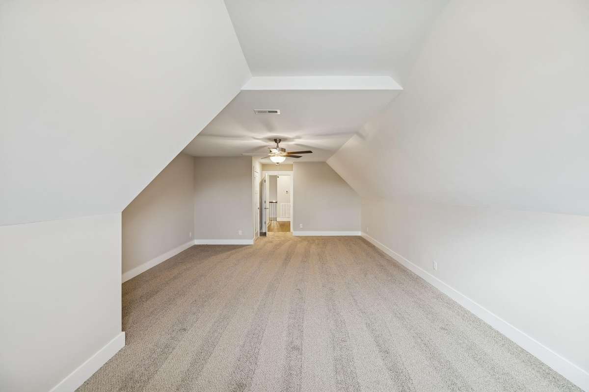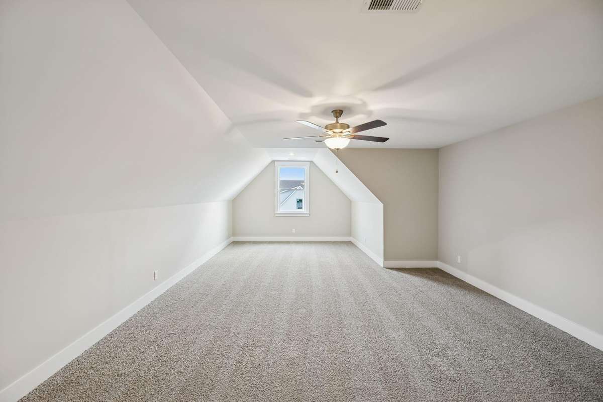 The large main level primary suite is tucked to the back of the home with a private en- suite bathroom hosting dual vanities, extra large custom tiled walk- in shower with bench seating, triple shower head system that includes rain shower with separate handheld, trackless glass door and walk- in closet. Allowing privacy for both guests and homeowners, upstairs you will find two additional bedrooms and second bathroom with upgraded tile tub and shower combo. Plus a finished bonus room or use as the 4th bedroom, that could be ideal for a second family room, media space or another relaxing space for extended stay guests.