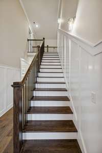 Inside you will find many upgrades for one price throughout: A versatile entryway bench that provides seating, storage, as the designated landing zone, quartz countertops, custom stained wood tongue and groove ceilings, generous custom molding and trim, popular board n batten and shiplap accents of woodwork, extensive recessed lighting, modern color choices, fixtures, ceramic tile, remote lights and hardwood flooring. * Zero carpeting on the main level* Convenience is the theme of this home including the main level laundry room with upper storage cabinets and half bath for guests.