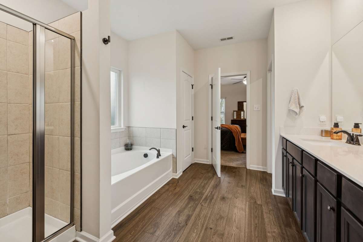 This must be the place! Built in 2020, this four- bedroom home provides an open layout with a well- appointed kitchen offering granite countertops, stainless appliances, and generous storage that connects seamlessly to a spacious living area framed by large windows and warm, inviting tones. The formal dining room sets the stage for memorable gatherings and everyday moments that still feel special, while your massive walk- in pantry provides thoughtful space and utility that makes hosting them all a little easier. The main- level primary suite includes double vanities and a walk- in closet, and the upper level adds three more roomy bedrooms.