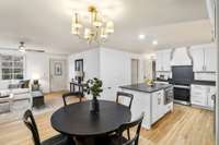 Original hardwood floors have been beautifully reimagined while a brand- new primary suite showcases a custom- trimmed walk- in closet and a spa- inspired bath with a 7 foot walnut vanity and designer tile. The kitchen is a showpiece—featuring honed granite countertops a farmhouse sink, open shelving with unlacquered brass rails, and a dedicated dish display cabinet to showcase your prettiest pieces.