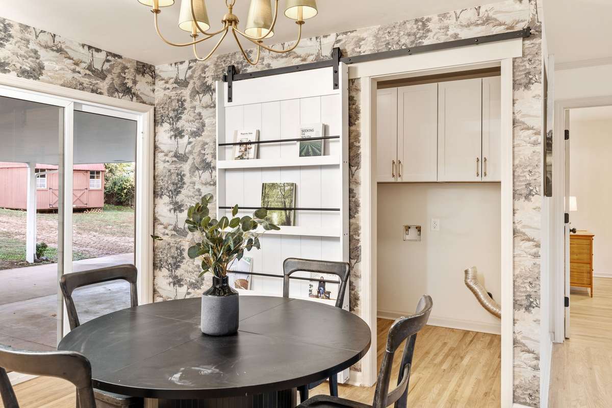 Enjoy Delta plumbing fixtures, imported lighting, and wallpaper accents that add depth and charm to every room. A secret bookshelf barn door cleverly conceals a spacious laundry room, adding a touch of whimsy and surprise.