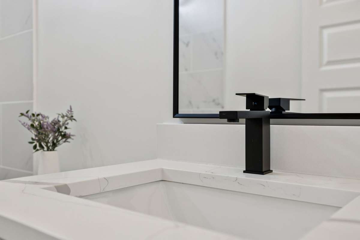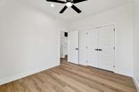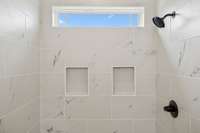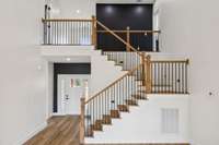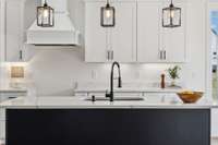 The laundry room doubles as a functional mudroom with a custom bench, built- in shelving, and sink, perfect for busy family life. The primary suite features generous closet space with custom built- ins and a spa- like bathroom with double vanities and a generous tile shower.