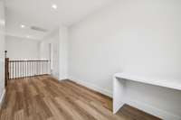 Upstairs, you’ll find a spacious bonus room with a full bath and walk in closet, a great spot for movie nights or guests. The upstairs nook with built in desk is an ideal place for homework or working from home.